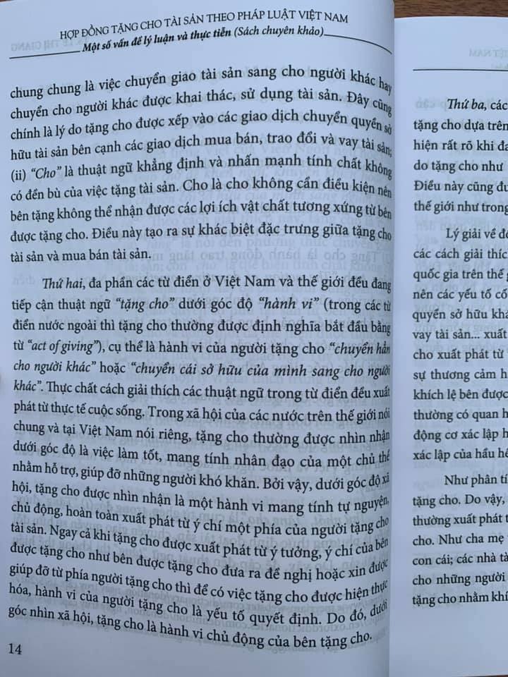 Mua tại TiktokHợp đồng tặng cho tài sản theo pháp luật Việt Nam Tác giả: Lê Thị Giang Nhà xuất bản: Tư Pháp Khổ sách: 14 x 20 cm Số trang: 362 Ngày phát hành: 11/2020 Giá bìa: 146.000 đồng