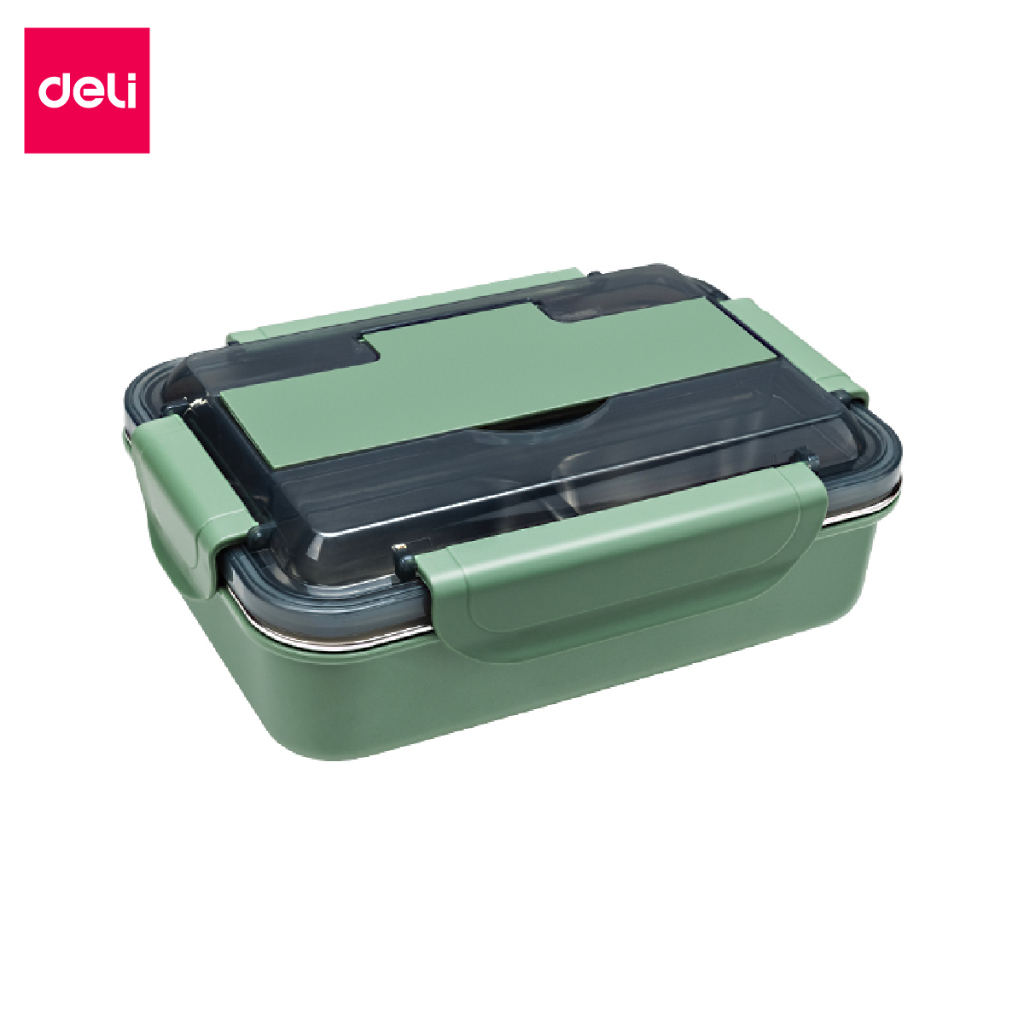 Hộp cơm giữ nhiệt, Hộp đựng cơm văn phòng Inox 1 tầng tặng kèm đũa thìa inox Deli