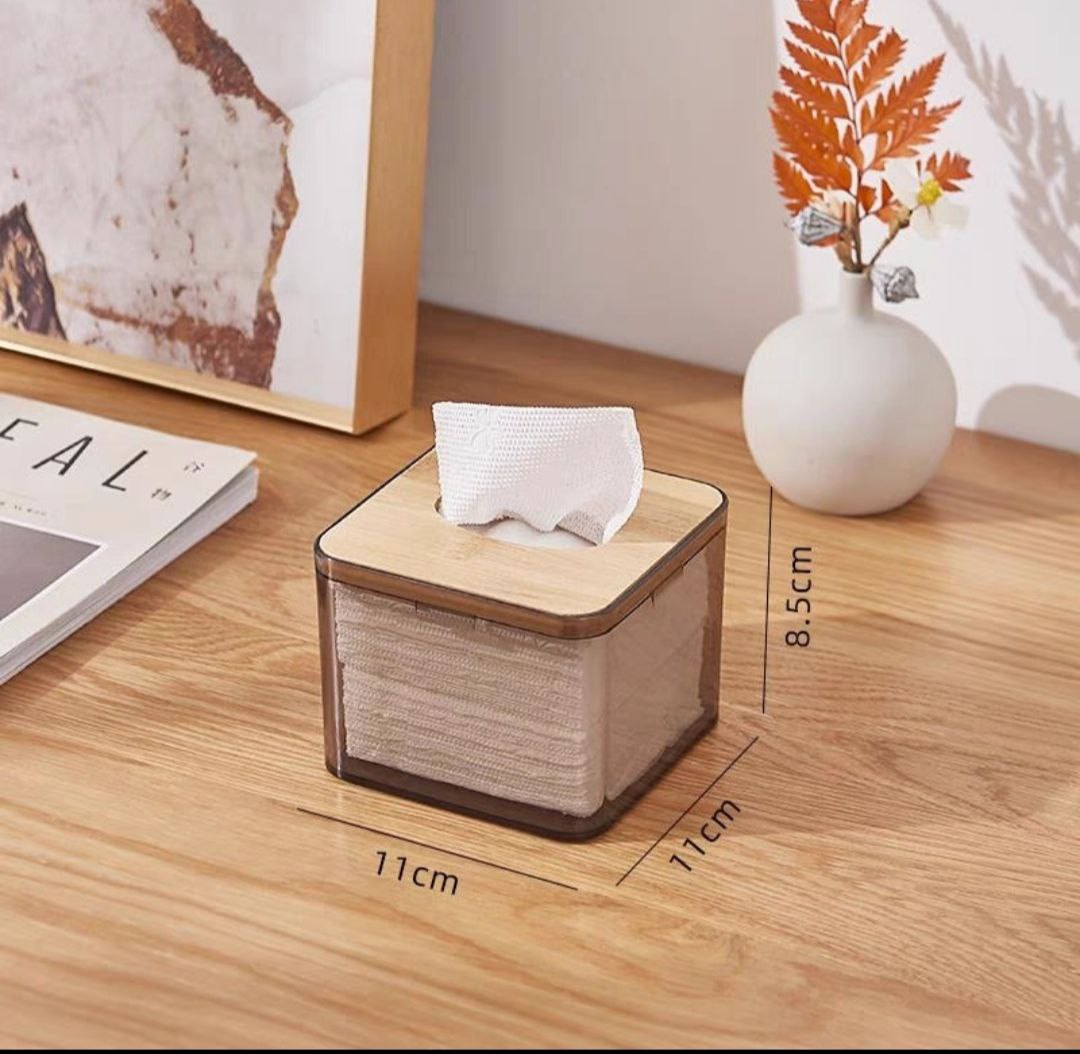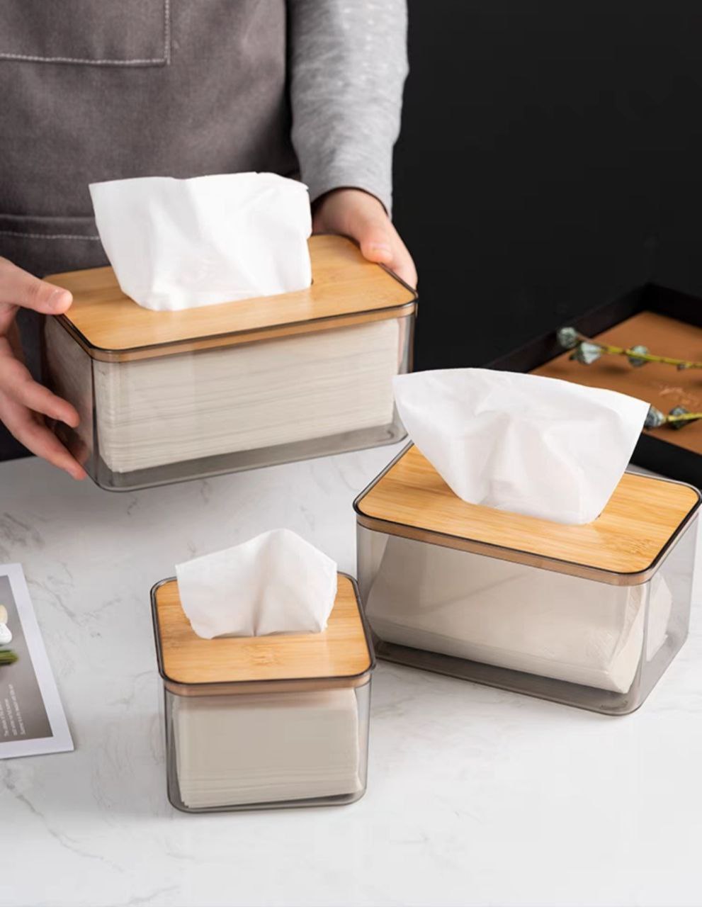 ✨HỘP ĐỰNG GIẤY ĂN NHỰA MIKA TRONG SUỐT NẮP GỖ TRE PHONG CÁCH BẮC ÂU