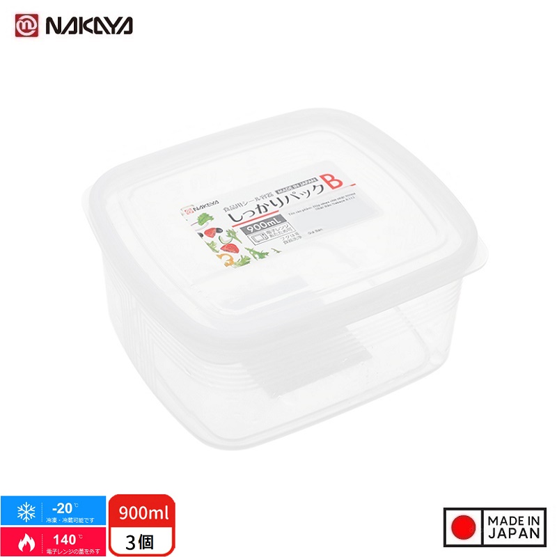 Hộp đựng thực phẩm vuông Nakaya Pack B 900ml thích hợp dùng trong lò vi sóng - Nhập khẩu từ Nhật Bản.