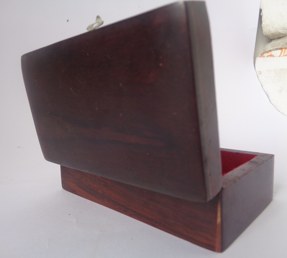 Hộp đựng trang sức bằng gỗ Nguyên liệu: gỗ trắc tự nhiên, gỗ quý 100% Kích thước: hộp đa dạng, 7 x11 x4cm; 11 x17,5 x 7cm; 15x 22 x 9cm; Hộp bóng mờ, rất đặc trưng hang thủ công mỹ nghệ , thiên nghệ thuật, sang trọng, hộp đựng trang sức, quân cờ , đựng dấu Công ty Hộp gỗ, đã gắn liền cuộc sống mỗi bao người, ngày xưa có hộp được sử dụng đựng trầu cau, hộp gỗ vuông, hộp tròn hay gọi tráp tròn, hộp thầy bói, thầy đồ cho thay đựng độ cắp theo bên người, hộp gỗ có kích cỡ tùy chọn, gỗ làm hộp gỗ trắc, hương, hộp trơn, hộp khảm xà cừ, chữ, cảnh, chim hoa..  Thiết kế hộp gồm hai nắp , nắp trên, nắp dưới, liên kết nhau bằng bản lề mở ra đằng sau, mặt trước hộp có móc khóa cài, được cài chốt lại chắc chắn, hộp sử dụng lưu trữ tài liệu, con dấu, hộp đựng con dấu công ty, trắc sức, Hộp khảm chữ, mang lại may mắn cho gia chủ.