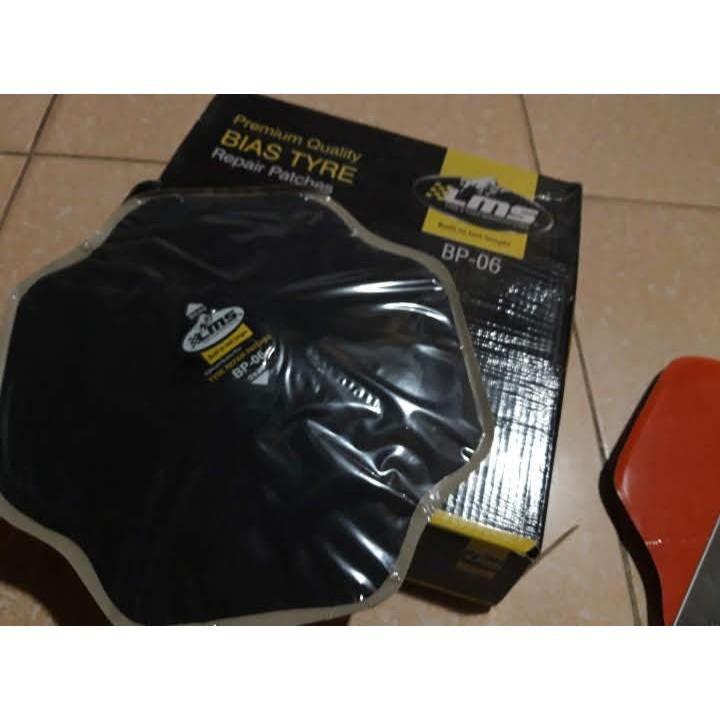 Hộp miếng vá lốp bố chéo LMS BP-06 Miếng vá chuyên dùng cho lốp bố chéo (Bias). Cấu tạo kết hợp từ cao su và lớp vải bên trong. Thông số kỹ thuật Model: BP-06