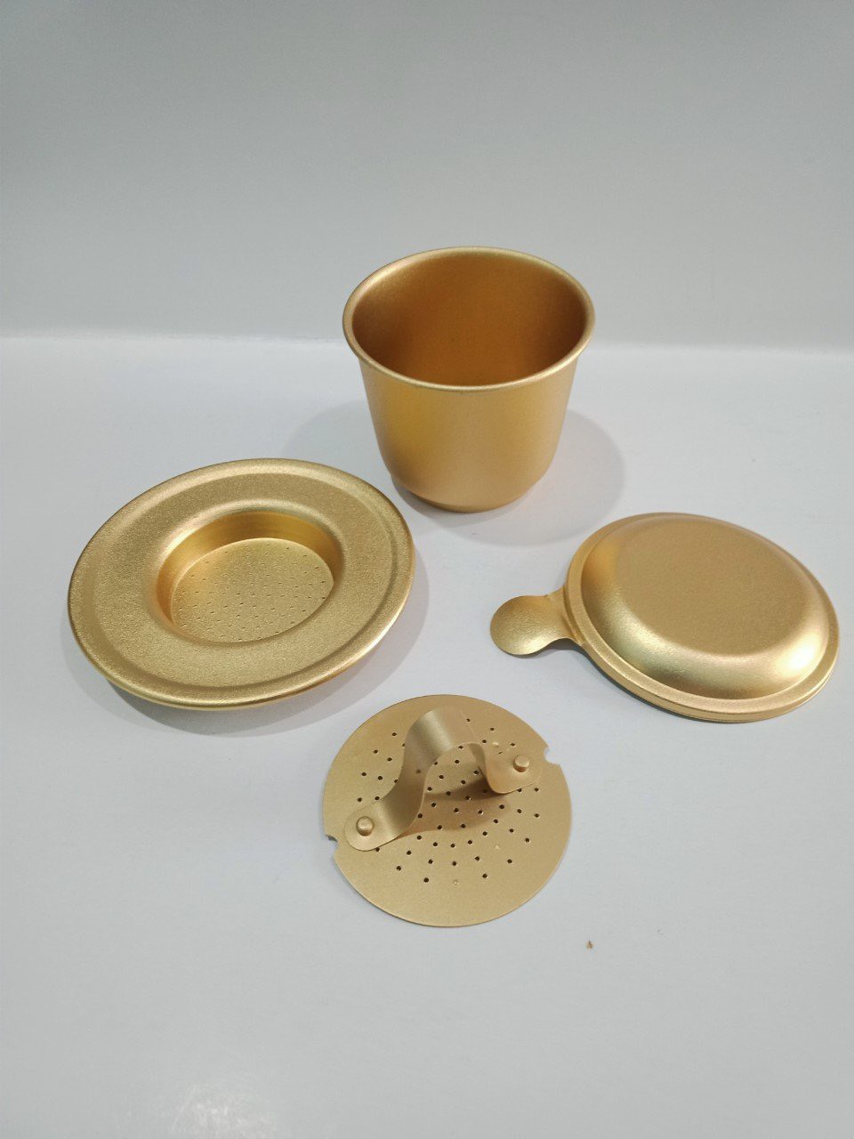 • Phin cà phê mạ màu cao cấp dùng để pha chế cà phê, hoặc trang trí khi không sử dụng.