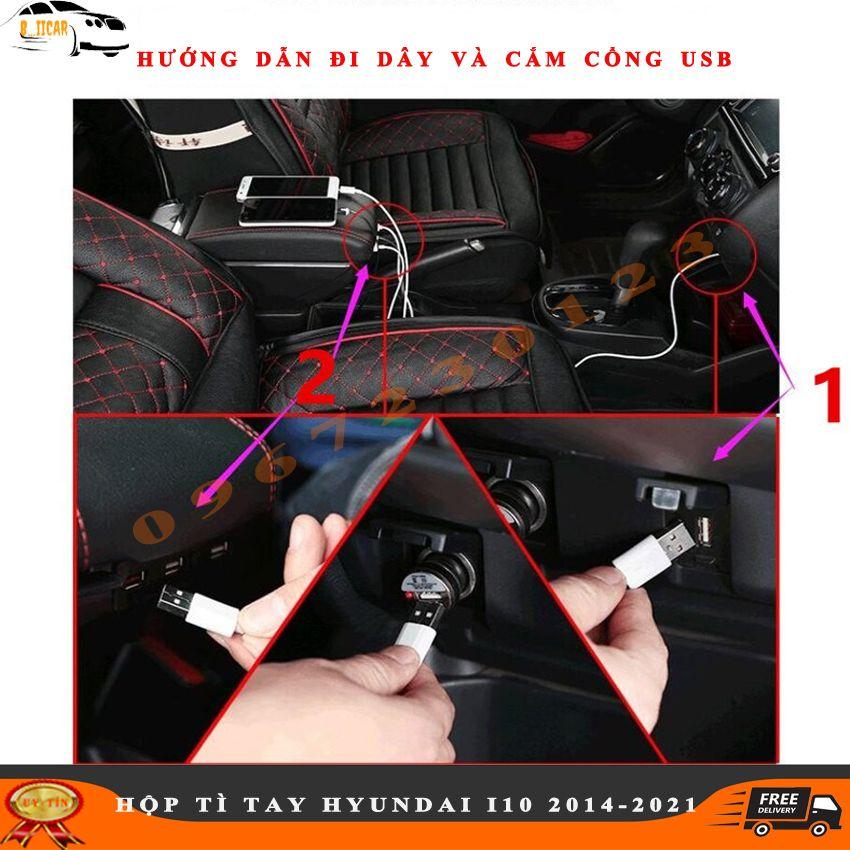 ✨Hộp Tì Tay I10 2014-2021 Có 2 Ngăn 7 Cổng USB Bọc Da Cao Cấp