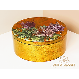 Hộp Tròn Sơn Mài Cao Cấp Họa Tiết Hoa Cúc Vàng | Arst Of Lacquer