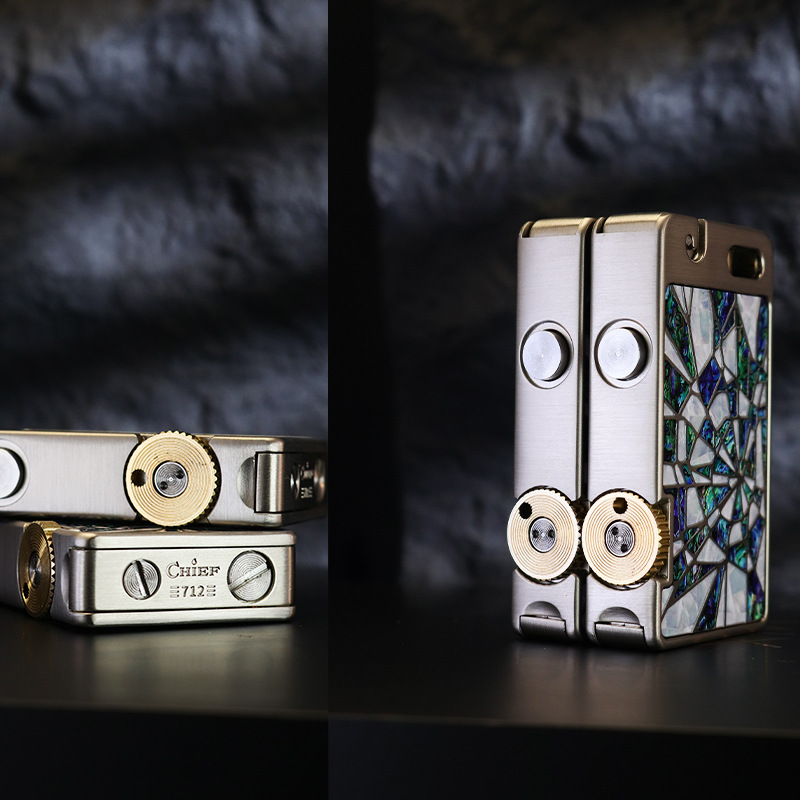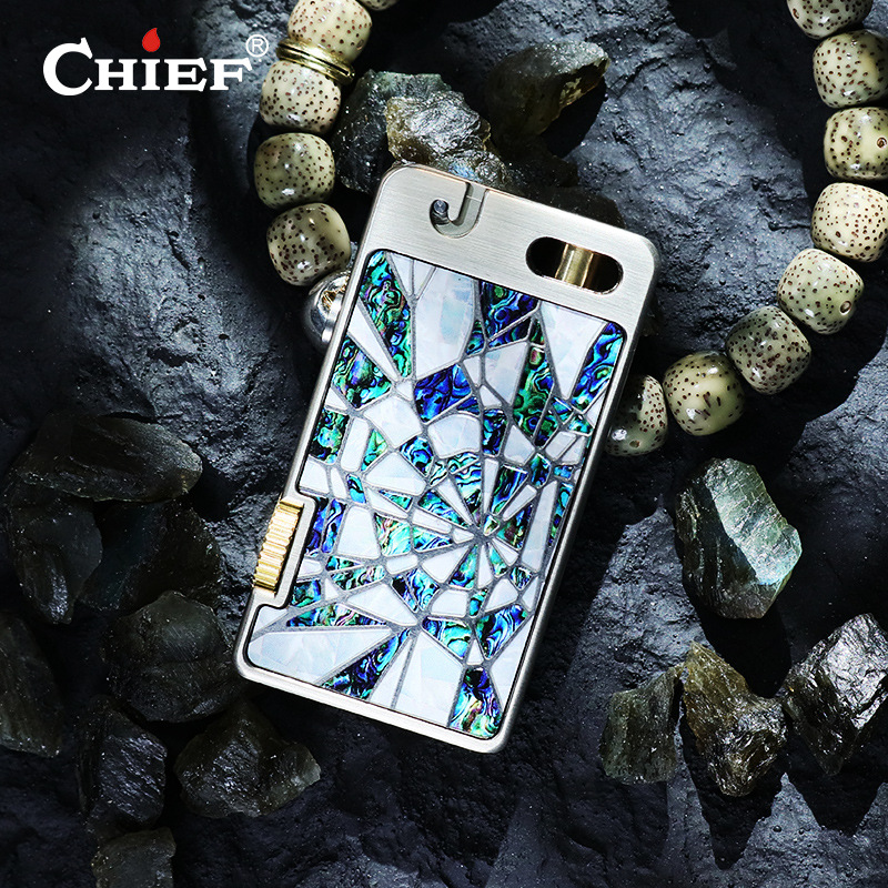 ✨Hột Quẹt Bật Lửa Xăng Đá Chief CF721-BG Mở Nắp Đánh Lửa Tự Động Khảm Xà Cừ Độc Đáo Lạ Mắt