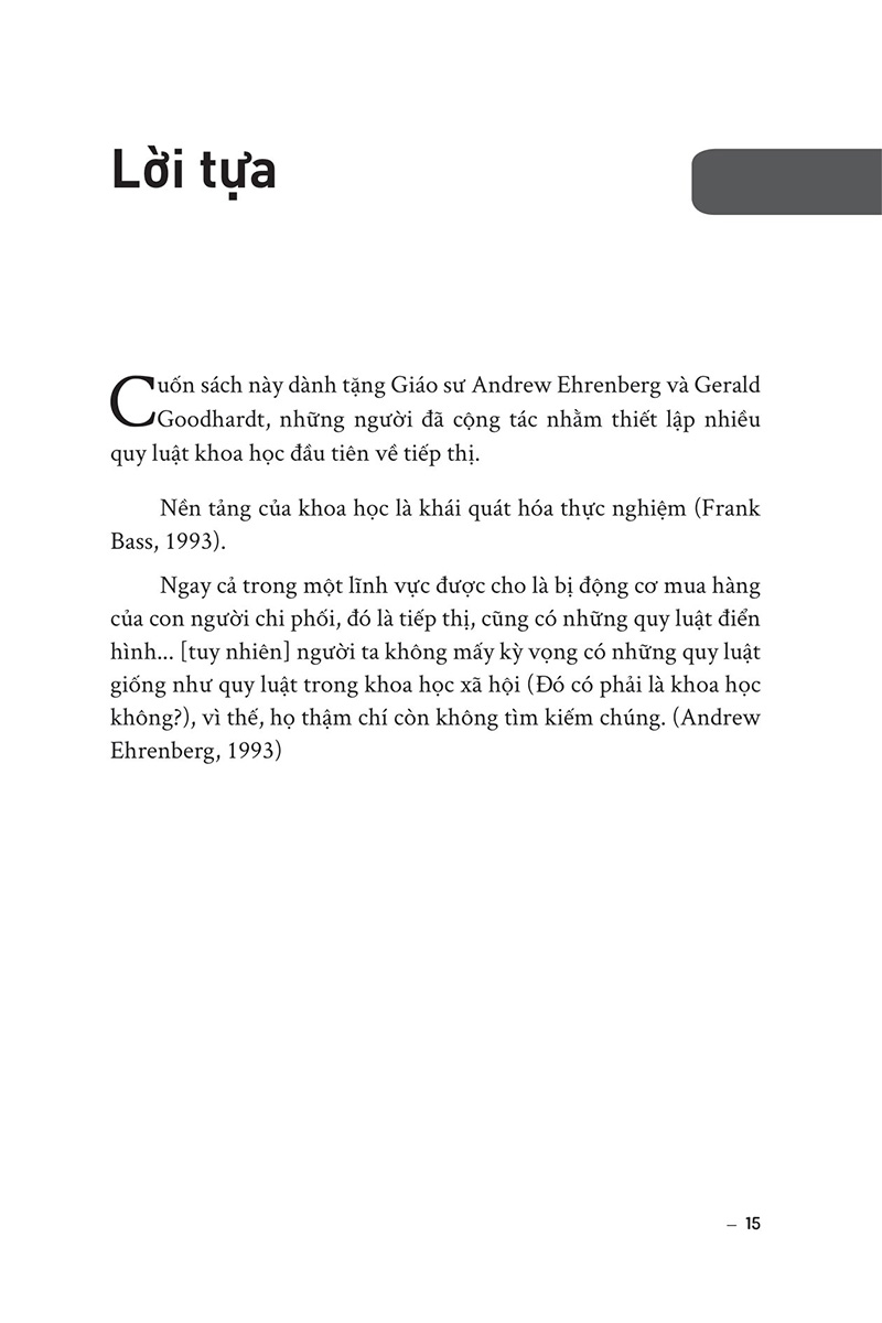 • Các ví dụ thực tế: Cuốn sách cung cấp cho độc giả nhiều ví dụ thực tế về các công ty đã thành công trong việc xây dựng thương hiệu và tăng trưởng doanh số. Cuốn sách này dành cho ai? Cuốn sách hướng tới các nhà tiếp thị, nhà quản lý thương hiệu, nhà nghiên cứu thị trường và những người quan tâm đến việc phát triển thương hiệu trong ngành kinh doanh, hoặc những người đang tìm kiếm giải pháp cho các vấn đề liên quan đến chiến lược tiếp thị và phát triển thương hiệu, muốn hiểu sâu hơn về cách thức mà thương hiệu phát triển và muốn áp dụng các phương pháp khoa học để đưa ra quyết định. Độc giả mong muốn hiểu rõ hơn về những yếu tố quan trọng trong việc xây dựng và duy trì thương hiệu mạnh mẽ, cũng như cách để tăng trưởng doanh số bằng cách tiếp cận khách hàng một cách khoa học và hiệu quả. Giới thiệu về tác giả Giáo sư Byron Sharp là Giám đốc Viện Khoa học Tiếp thị Ehrenberg-Bass tại Đại học Nam Úc. Nghiên cứu cơ bản của Viện được sử dụng và hỗ trợ tài chính bởi nhiều tập đoàn hàng đầu thế giới bao gồm Coca-Cola, Kraft, K's, British Airways, Procter & Gamble, Nielsen, TNS, Turner Broadcasting, Network Ten, Simplot, Mars và nhiều tập đoàn khác. Tiến sĩ Sharp đã xuất bản hơn 100 bài báo học thuật và là thành viên ban biên tập của năm tạp chí. Gần đây, ông đồng tổ chức một hội nghị tại Trường Kinh doanh Wharton về luật quảng cáo và cùng với Giáo sư Jerry Wind, đang biên tập một số đặc biệt của Tạp chí Nghiên cứu Quảng cáo về chủ đề này .