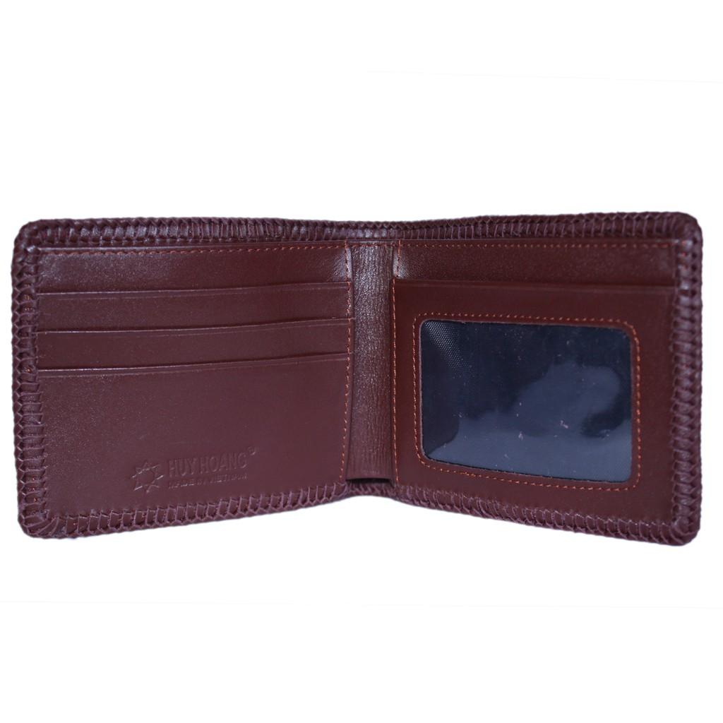 - Tên sản phẩm: Bóp nam da đà điểu Huy Hoàng da chân đan viền màu nâu đỏ - HP2437