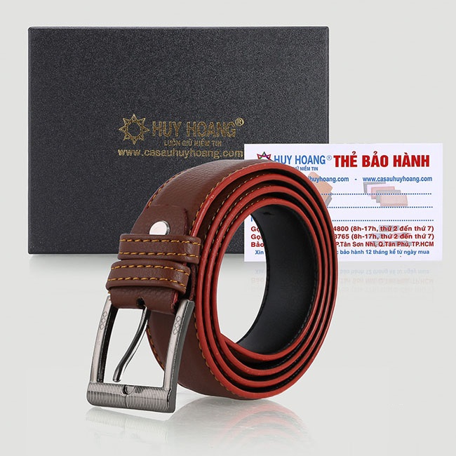 Dây nịt/Thắt lưng nam da bò Huy Hoàng 3,5P bát gài màu nâu 4148