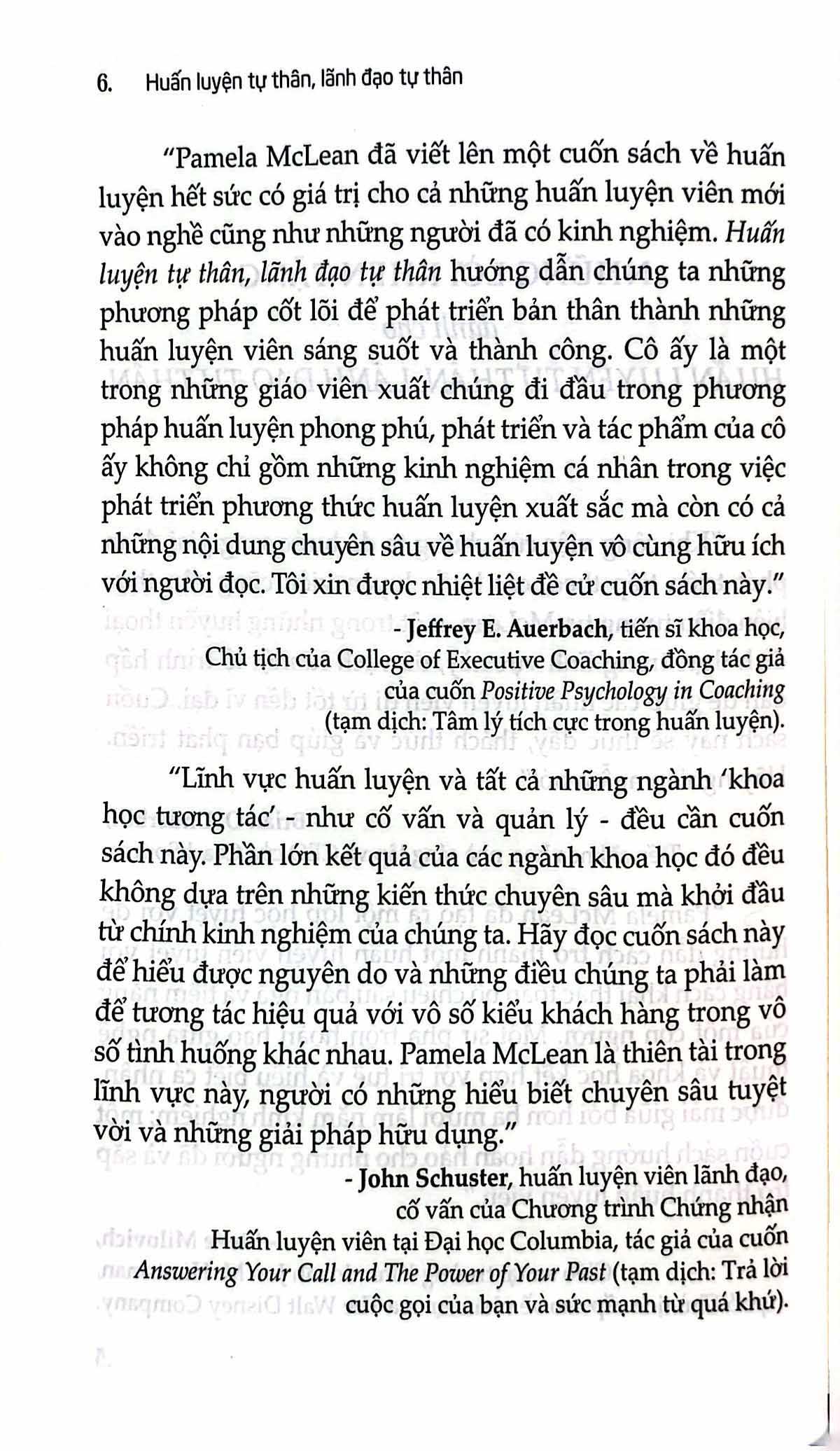Mua tại TiktokHuấn luyện tự thân, lãnh đạo tự thân tập trung vào khái niệm sử dụng chính bản thân làm công cụ huấn luyện, một khía cạnh chính trong công việc huấn luyện khai vấn. Cách tiếp cận mới mẻ và sáng tạo này sẽ giúp các huấn luyện viên cùng các nhà lãnh đạo mở rộng con đường khám phá chính mình,