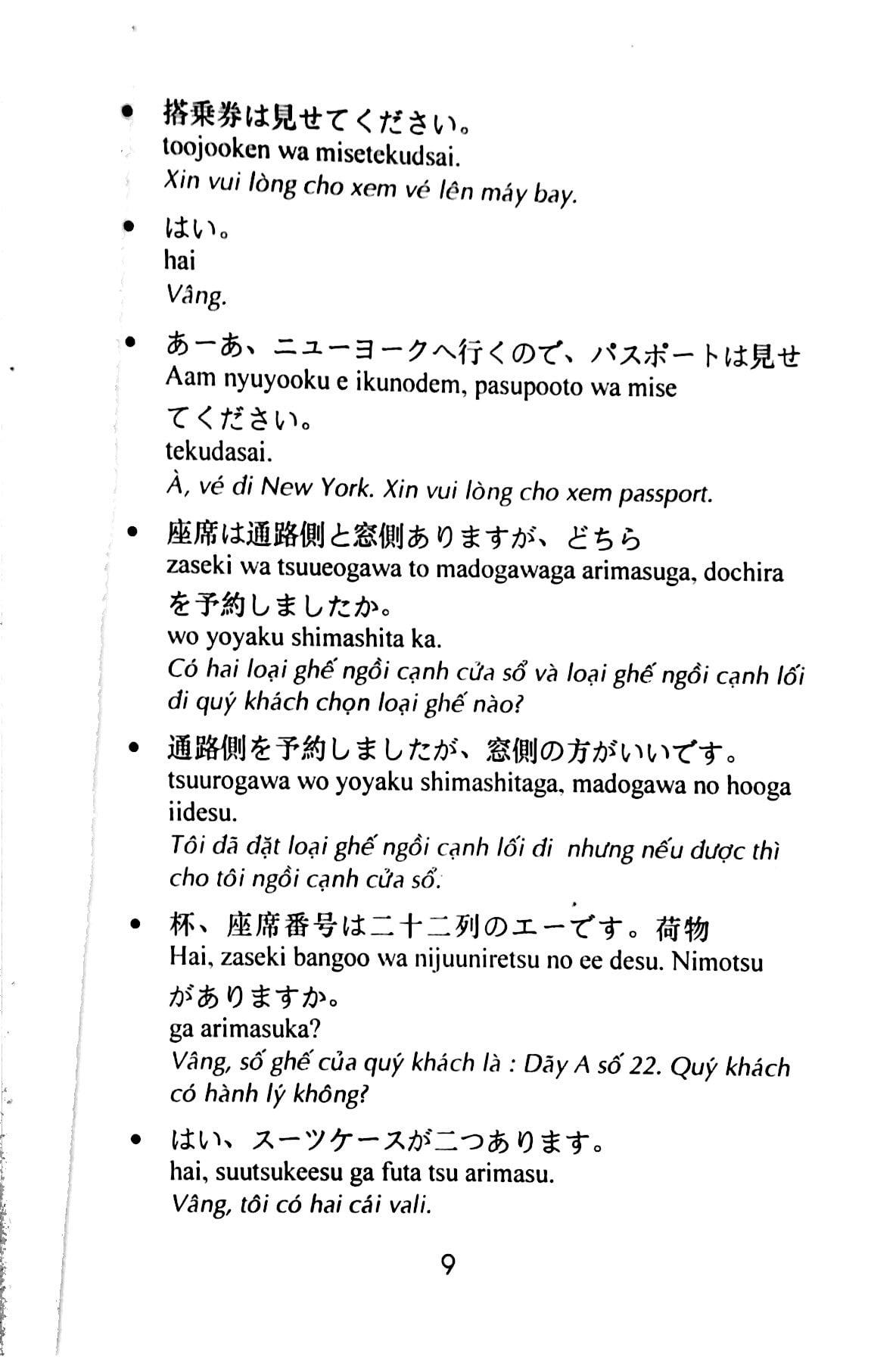 Hướng Dẫn Học Tiếng Nhật Từ Căn Bản Đến Nâng Cao Mục lục 1. Tại phi trường 2. Trên máy bay 3. Kiểm tra hộ chiếu và thủ tục hải quan 4. Tại ga xe