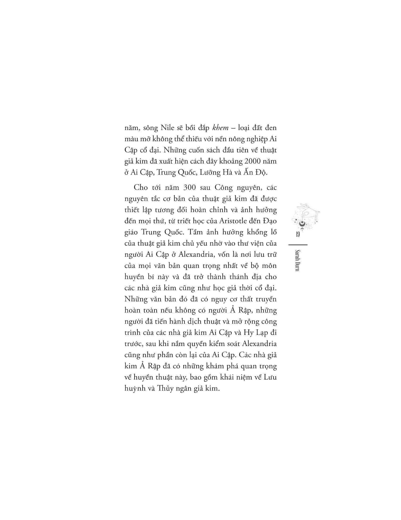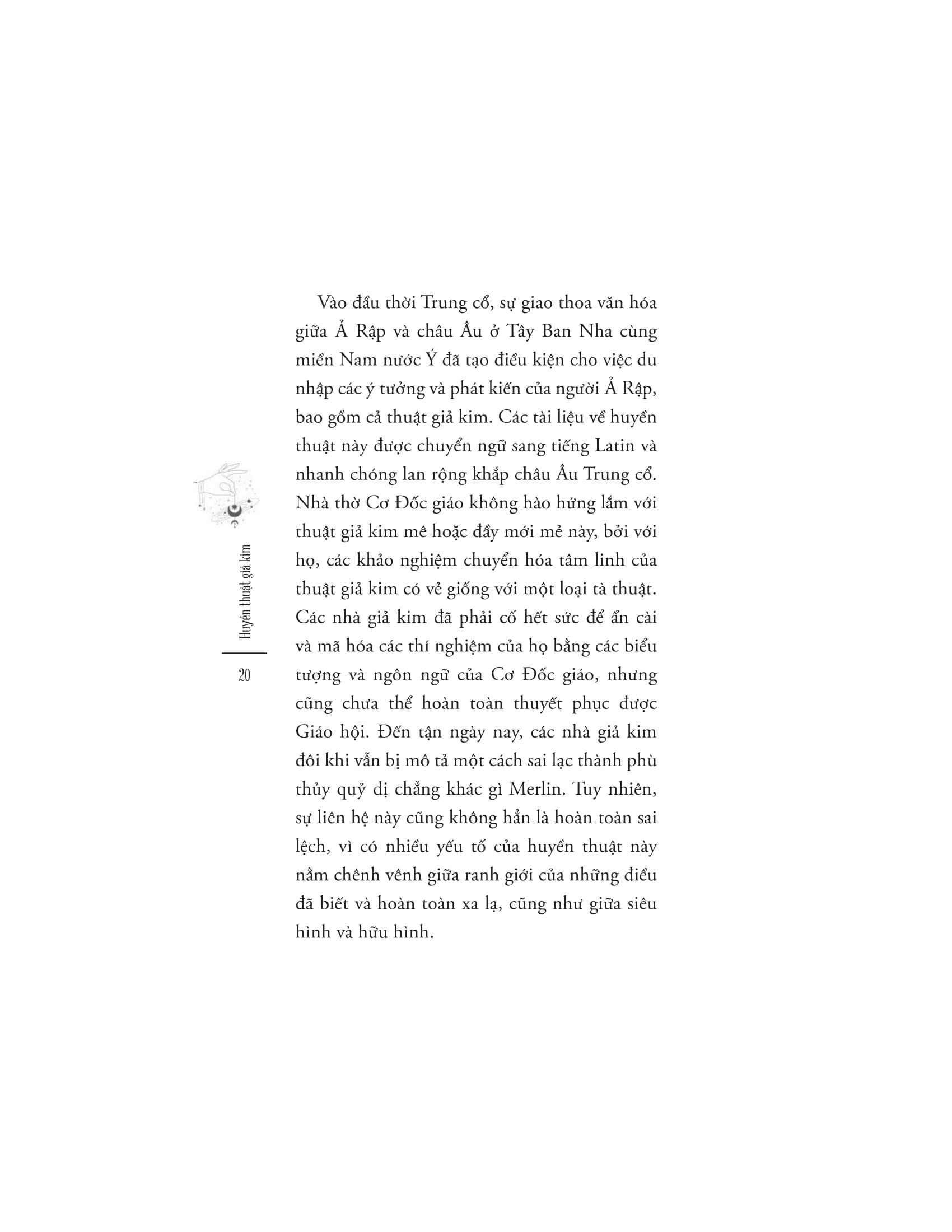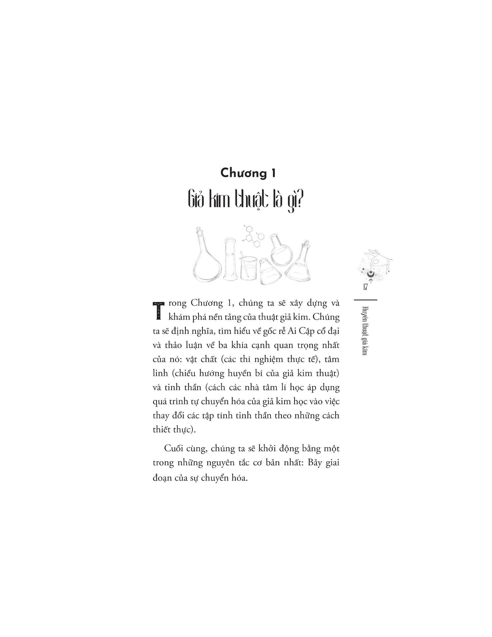 Nhắc tới giả kim, bạn hẳn sẽ tưởng tượng ra hình ảnh một cụ già với chòm râu lớn, ngồi nơi tầng hầm lâu đài, giữa những loại bột bí ẩn và chai lọ sủi bọt suốt ngày đêm để biến chì thành vàng. Nhưng giả kim ẩn chứa nhiều hơn thế. Nó là nghệ thuật của sự chuyển hóa, là chìa khóa để khai mở tiềm thức con người và là công cụ để giúp chúng ta đạt tới được dạng thức cao nhất của bản thể. Giống như nhiều truyền thống khác, thuật giả kim cũng chưa từng thực sự biến mất, thậm chí nó còn phát triển và đan cài trong nguồn gốc của các ngành khoa học hiện đại, từ vật lí lượng tử đến phân tâm học.