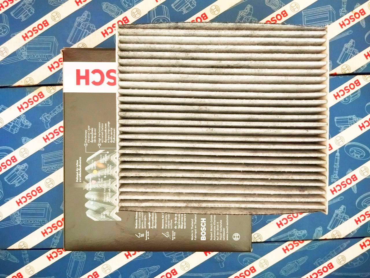 Công nghệ lọc điều hòa than hoạt tính cuả Bosch lọc hiệu quả các loại khuẩn ẩm mốc và các mùi khó chịu như ôzôn, oxit nitơ trong khoang xe