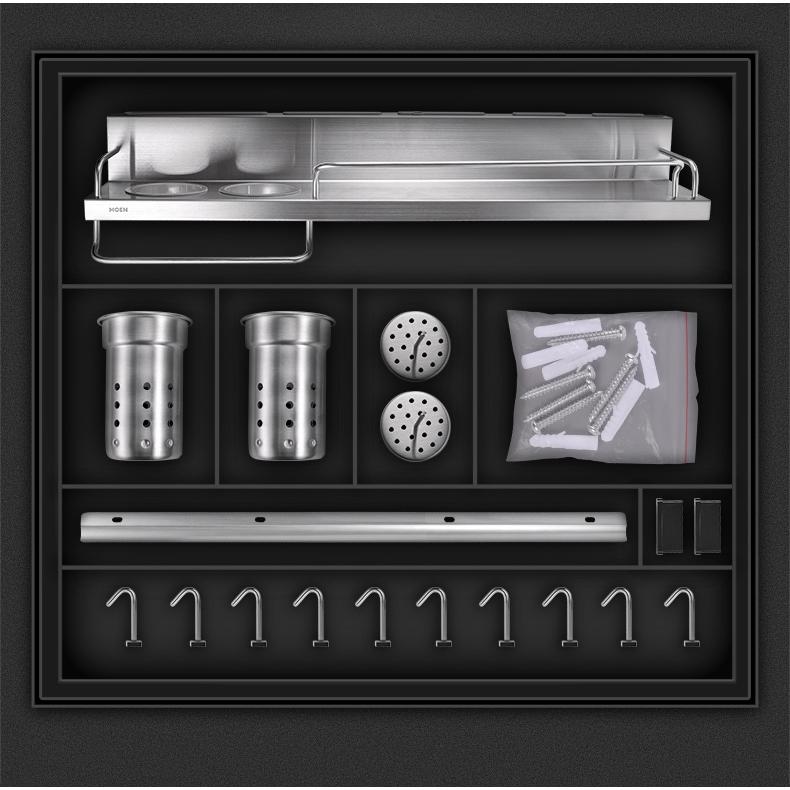 Mua tại TiktokKỆ GIA VỊ ĐA NĂNG KÈM 2 ỐNG ĐŨA, MÓC TREO MOEN - KAC0104SL Chất liệu: Inox 304 Sản phẩm của MOEN - Thương hiệu vòi sen số một tại Mỹ Bao gồm kệ gia vị, 2 ống đũa, khe đựng dao kéo, bộ 10 móc treo Lớp mạ nhám chống bẩn, chống vân tay Góc cạnh bo tròn tránh nguy hiểm Lớp nhựa cao su bảo vệ lưỡi dao, kéo Ống đũa có nắp và lỗ thoát nước tránh ẩm mốc