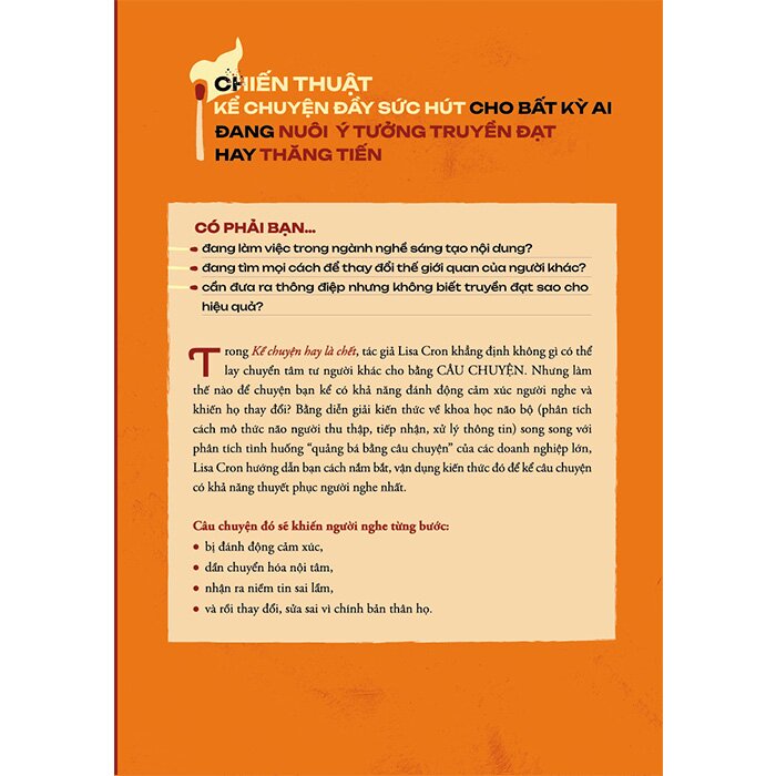 Kể Chuyện Hay Là ChếtTrong Kể chuyện hay là chết, tác giả Lisa Cron khẳng định không gì có thể lay chuyển tâm tư người khác cho bằng CÂU CHUYỆN. Nhưng làm thế nào để chuyện bạn kể có khả năng đánh độ...
