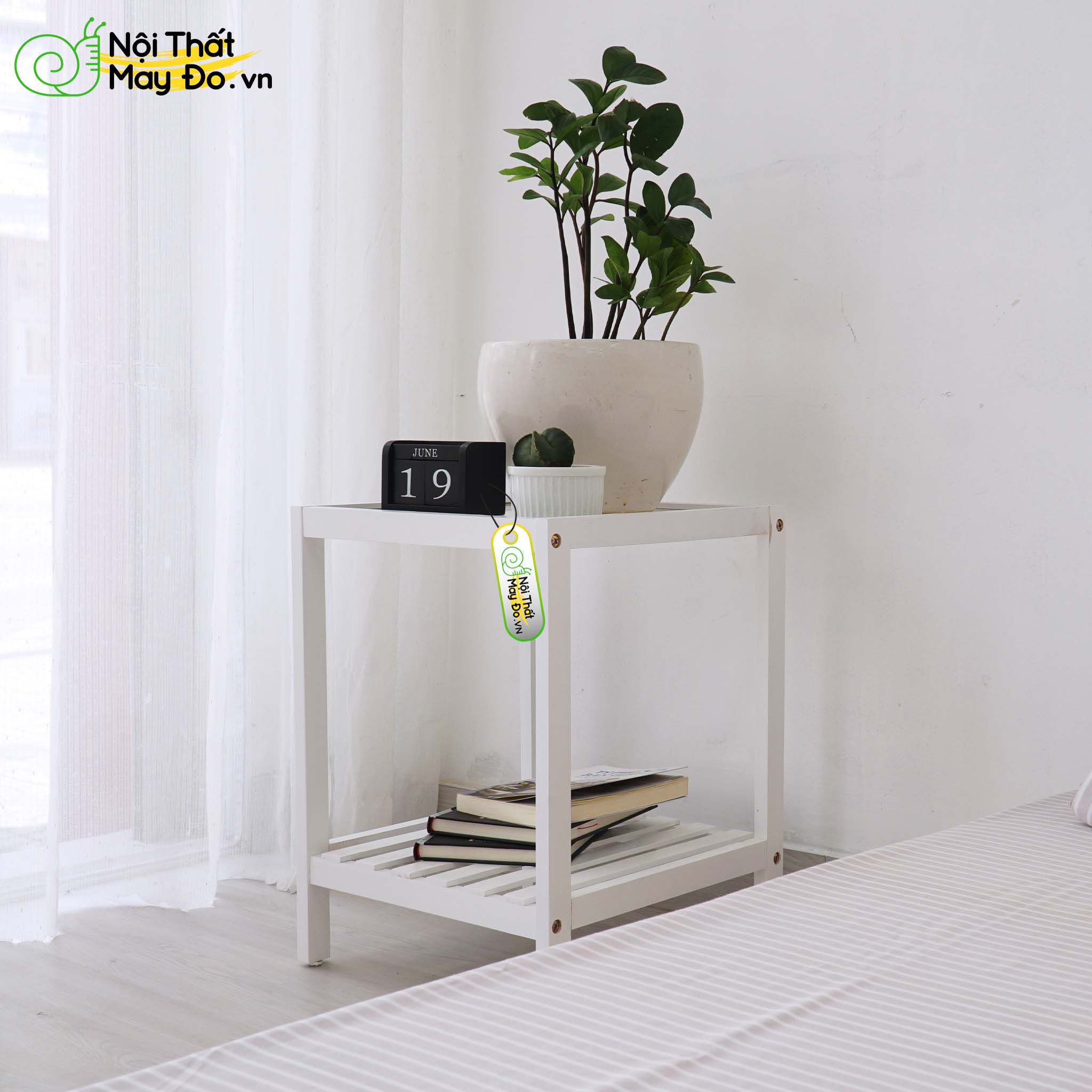 THÔNG TIN SẢN PHẨM - Tên sản phẩm: Tab đầu giường phong cách Nordic - Chất liệu: Gỗ MDF phủ melamin, chân gỗ sồi tự nhiên - Màu sắc: Trắng - Vân gỗ - Cấu