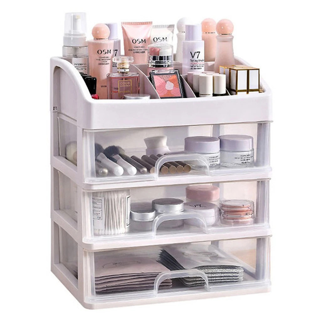 Kệ Đựng Mỹ Phẩm , Đồ Trang Điểm Trong Suốt 4 Tầng 9 Ngăn , Có Ngăn Kéo Bền Đẹp - Hàng Chính Hãng