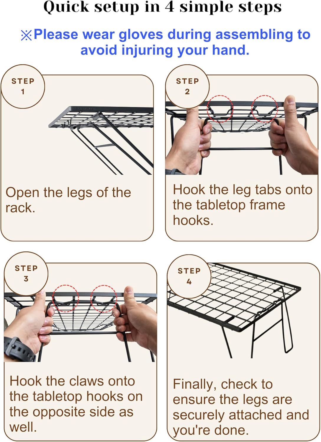 - Chịu tải: Khoảng 66,1 lbs (30 kg) nhưng vui lòng không sử dụng bếp củi hoặc nồi bằng gang. Vui lòng sử dụng sản phẩm này sau khi quan sát tải trọng tối đa.) 【Cấu trúc gấp gọn nhỏ gọn】Gấp gọn chỉ còn khoảng 2,5 cm, tiết kiệm không gian trong xe hơi hoặc nhà ở. 【Tiết kiệm không gian & Di động】Thiết kế mỏng cho phép cất giữ hiệu quả và giảm thiểu việc chiếm dụng cốp xe. 【Khuyến nghị xếp chồng an toàn】Hoặc sử dụng nhiều tầng, nên dùng đai cố định do khung mỏng.