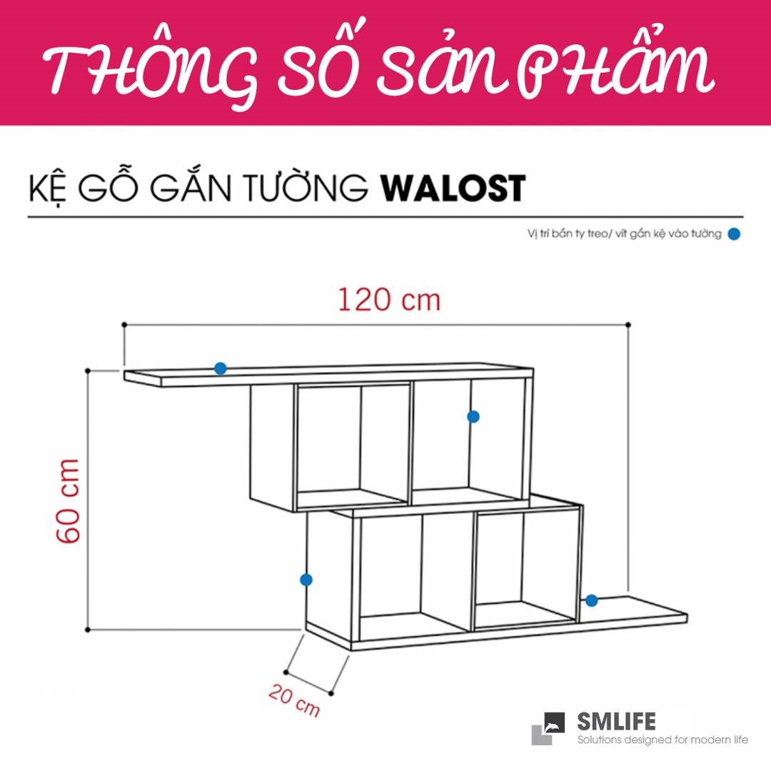 Mua tại TiktokMang đậm phong cách nội thất đơn giản, kệ gỗ trang trí gắn tường Walost là một sự bổ sung hoàn hảo cho căn hộ hay văn phòng của bạn. Kệ gỗ Walost được thiết kế theo phong cách đơn giản, hiện đại giúp bạn thoải mái trang trí sách hay các vật dụng trang trí an toàn. Sử dụng vật liệu ván ép công nghiệp MDF chống ẩm phủ Melamine cao cấp giúp kệ gỗ trang trí SMLIFE có độ bền cao, chống trầy và chống ẩm rất tốt. Bạn có thể tự lắp đặt sản phẩm dễ dàng với các phụ kiện và hướng dẫn đi kèm.Copy phần mô tả vào đây. Tô đậm phần tên sản phẩm.