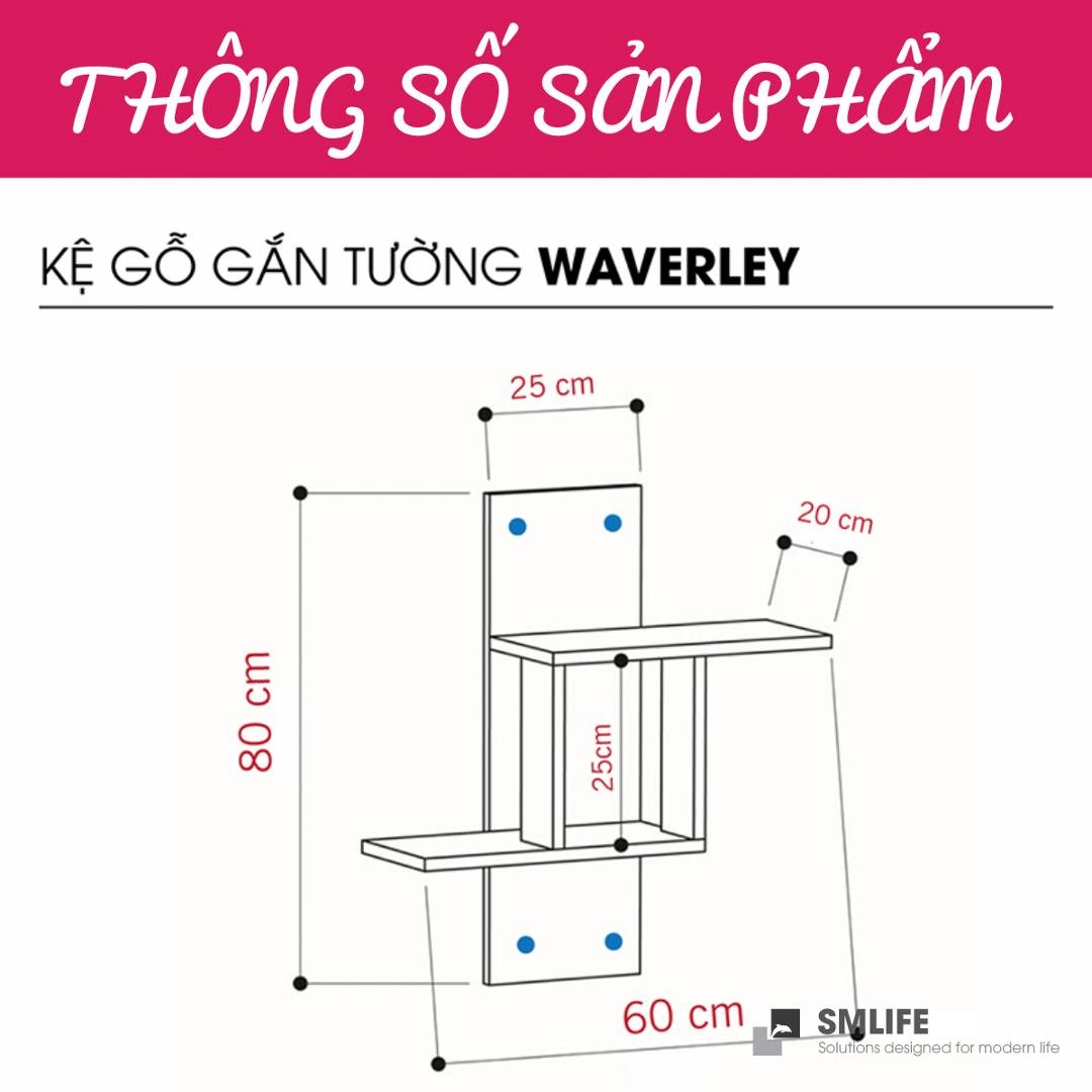 Mua tại TiktokMang đậm phong cách nội thất đơn giản, kệ gỗ trang trí gắn tường Waverley là một sự bổ sung hoàn hảo cho căn hộ hay văn phòng của bạn. Kệ gỗ Waverley được thiết kế theo phong cách đơn giản, hiện đại giúp bạn thoải mái trang trí sách hay các vật dụng trang trí an toàn. Sử dụng vật liệu ván ép công nghiệp MDF chống ẩm phủ Melamine cao cấp giúp kệ gỗ trang trí SMLIFE có độ bền cao, chống trầy và chống ẩm rất tốt. Bạn có thể tự lắp đặt sản phẩm dễ dàng với các phụ kiện và hướng dẫn đi kèm.