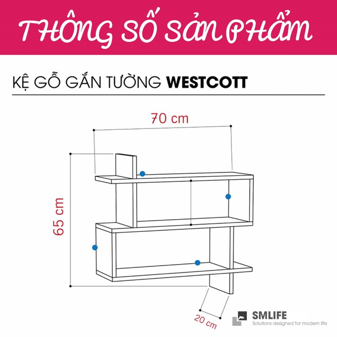 Mua tại TiktokMang đậm phong cách nội thất đơn giản, kệ gỗ trang trí gắn tường Westcott là một sự bổ sung hoàn hảo cho căn hộ hay văn phòng của bạn. Kệ gỗ Westcott được thiết kế theo phong cách đơn giản, hiện đại giúp bạn thoải mái trang trí sách hay các vật dụng trang trí an toàn. Sử dụng vật liệu ván ép công nghiệp MDF chống ẩm phủ Melamine cao cấp giúp kệ gỗ trang trí SMLIFE có độ bền cao, chống trầy và chống ẩm rất tốt. Bạn có thể tự lắp đặt sản phẩm dễ dàng với các phụ kiện và hướng dẫn đi kèm.