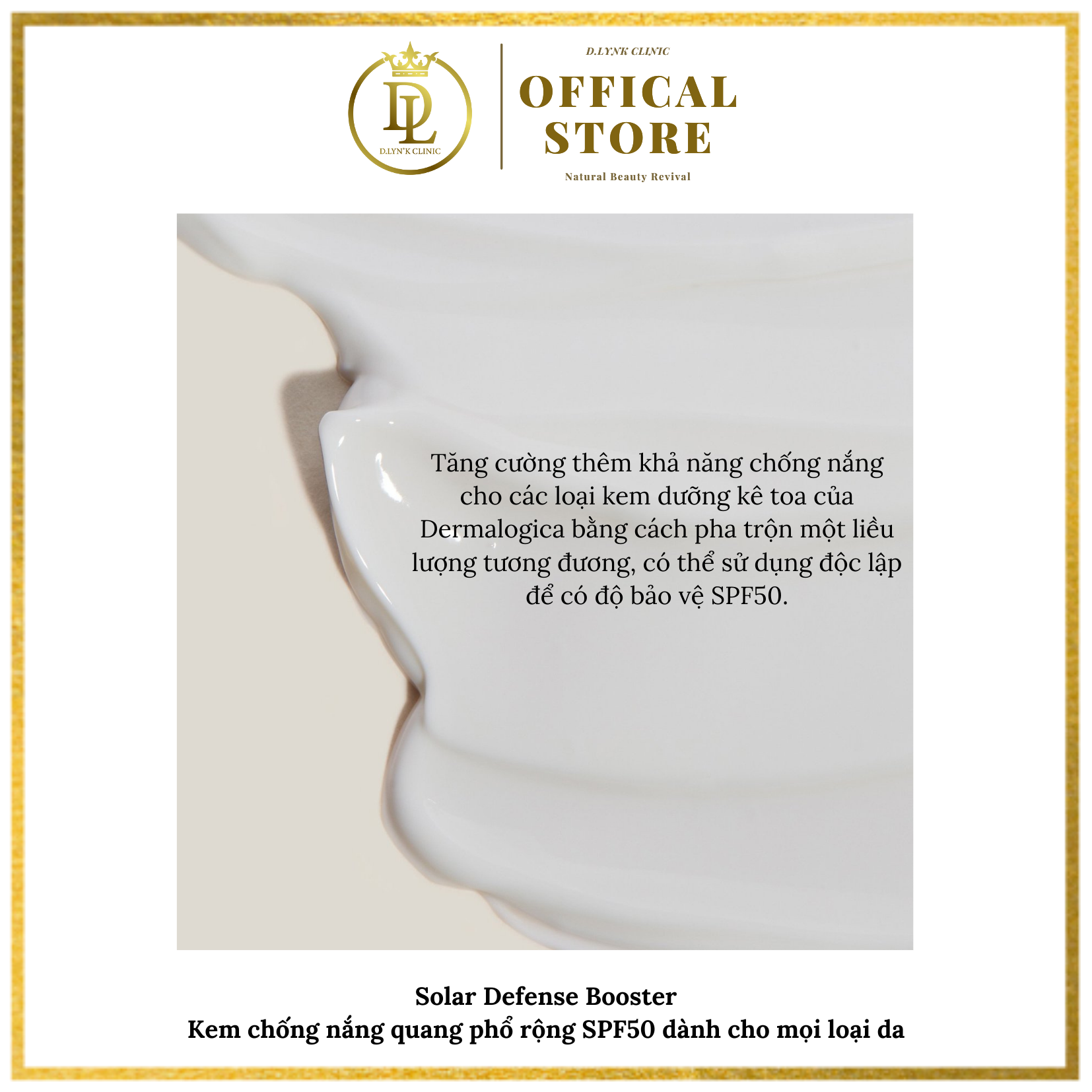 Solar Defense Booster Kem chống nắng quang phổ rộng SPF50 dành cho mọi loại da - Đây là một loại kem chống nắng có trọng lượng nhẹ, không làm cay mắt, không gây kích ứng và không làm cho da của tôi bị bóng nhẫy.