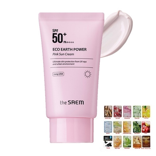 ✨Kem chống nắng The Saem Eco Earth Power Pink Sun Cream (50g) [ Được Mask 3W Clinic ]