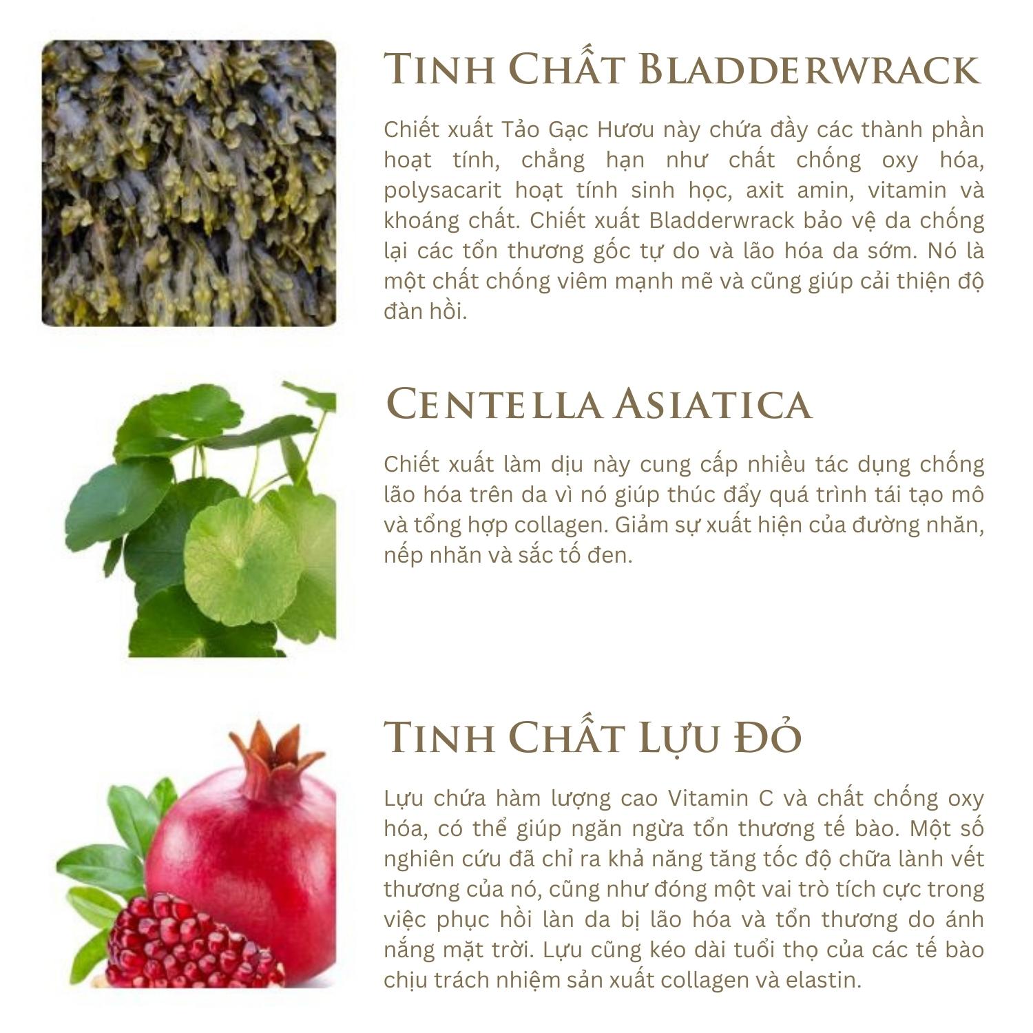 Thành phần: Water, Dipropylene Glycol, Cetyl Ethylhexanoate, Prunus Armeniaca (Apricot) Kernel Oil, PEG-240/HDI Copolymer Bis-Decyltetradeceth-20 Ether, Glycerin, Macadamia Ternifolia Seed Oil, Phaseolus Radiatus Meristem Cell Culture Extract, Phaseolus Radiatus Meristem Cell Culture Extract, Algin, Disodium