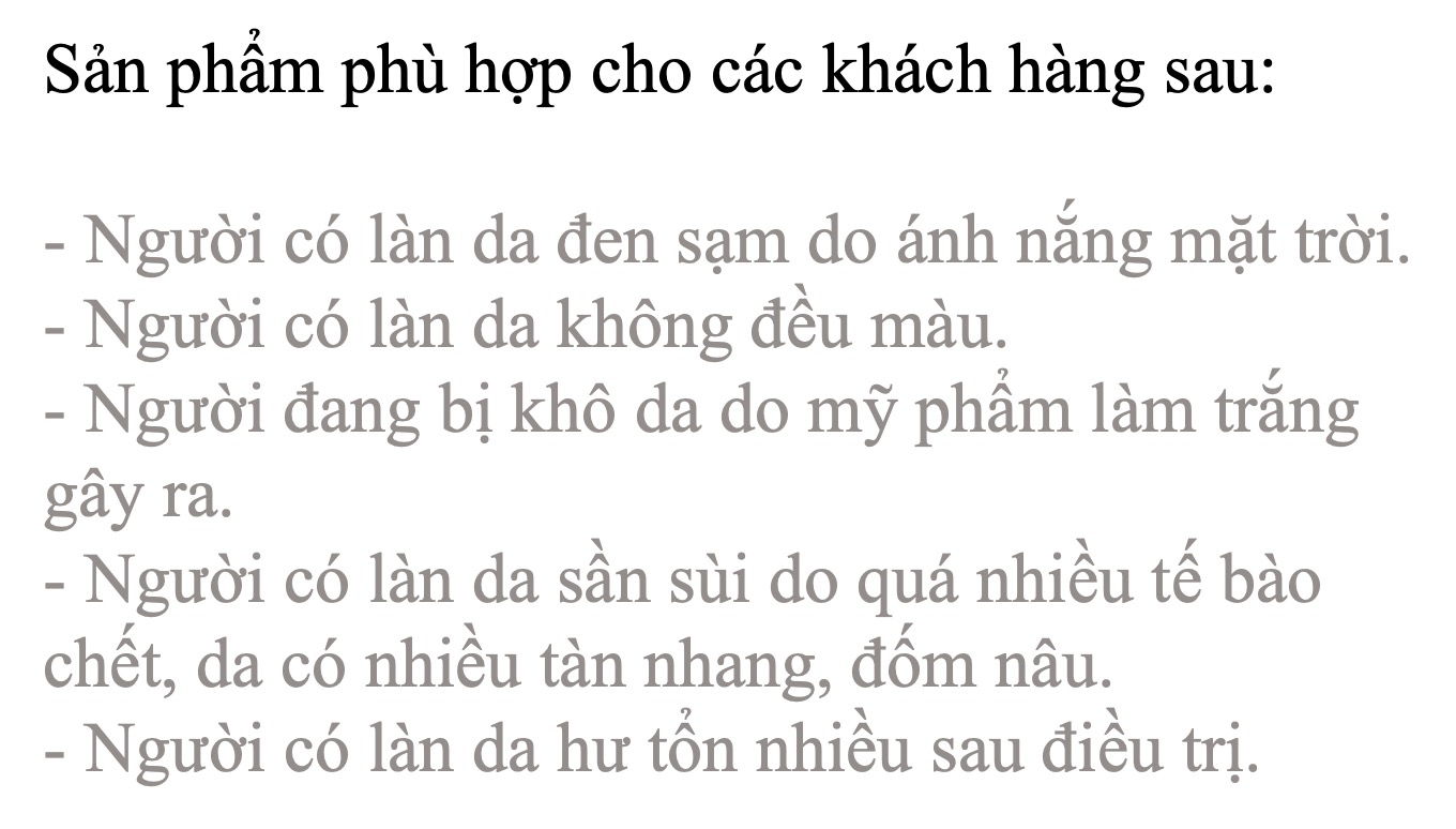 CÔNG DỤNG: - Khôi phục lớp biểu bì - Làm giảm cảm giác ngứa và khó chịu - Dưỡng ẩm - Thanh lọc da - Tạo một lớp màng thoáng khí bảo vệ da tối