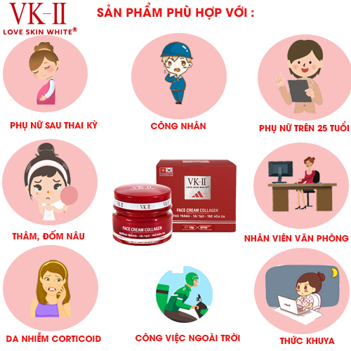 Kem dưỡng trắng, tái tạo và trẻ hóa da VK-II Love Skin White Face Cream Collagen 10g THÔNG TIN CHI TIẾT VỀ KEM DƯỠNG TRẮNG, TÁI TẠO VÀ TRẺ HÓA LÀN DA VK-II - Thương