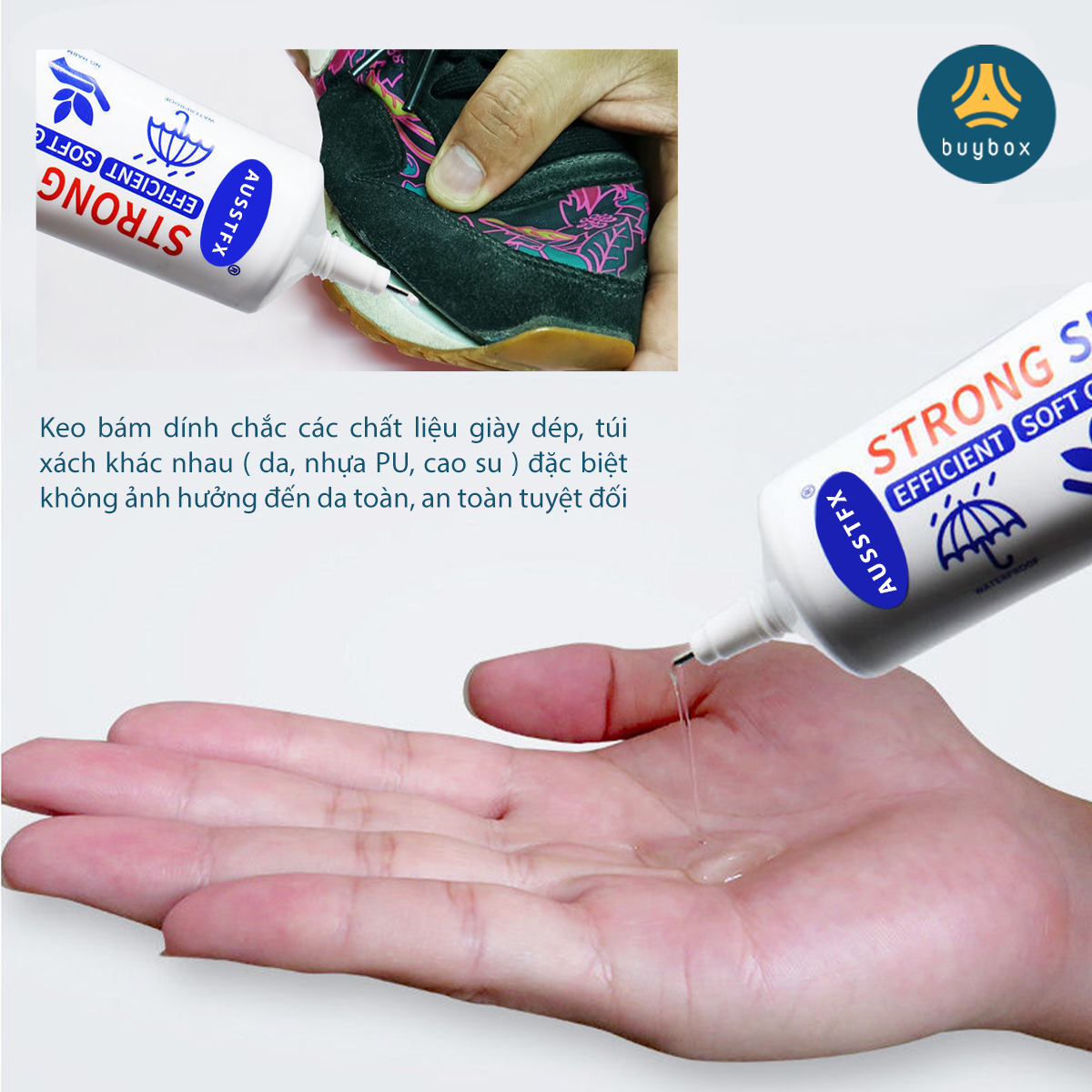 • Dưới đây là "KEO DÁN GIÀY ĐA NĂNG BUYBOX" với chất keo bền chặt, chống thấm hiệu quả sẽ không khiến ban thất vọng!