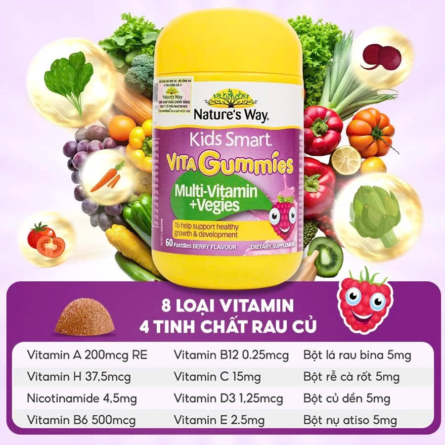 ✨Kẹo Dẻo Vitamin Tổng Hợp Cho Bé Nature's Way Kids Smart Vita Gummies Multivitamin Vegies 60 Viên/Hộp