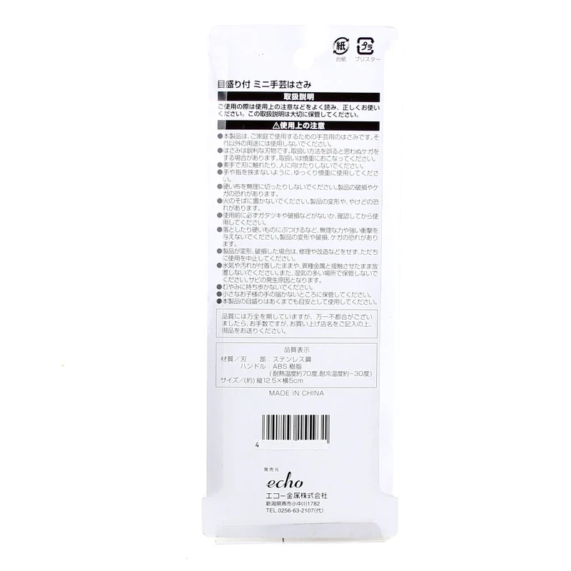 Kéo thủ công mini có thước đo Echo Metal 13cm ■ Xuất xứ: Nhật Bản | MADE IN JAPAN ■ NSX: Echo Kinzoku Co.,Ltd (Japan) ■ Kích thước:Σ 130mm x lưỡi kéo 45mm ■ Màu sắc: Màu trắng |