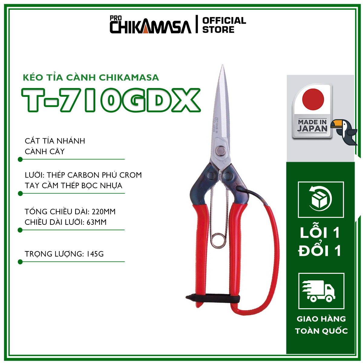 Chikamasa T-710GDX là mẫu kéo tỉa cành đơn giản và gọn gàng nhất dùng để cắt cành lá nhỏ, tỉa tót chậu hoa, bụi kiểng. Kiểu dáng trước sau thon thả với tay cầm nhỏ