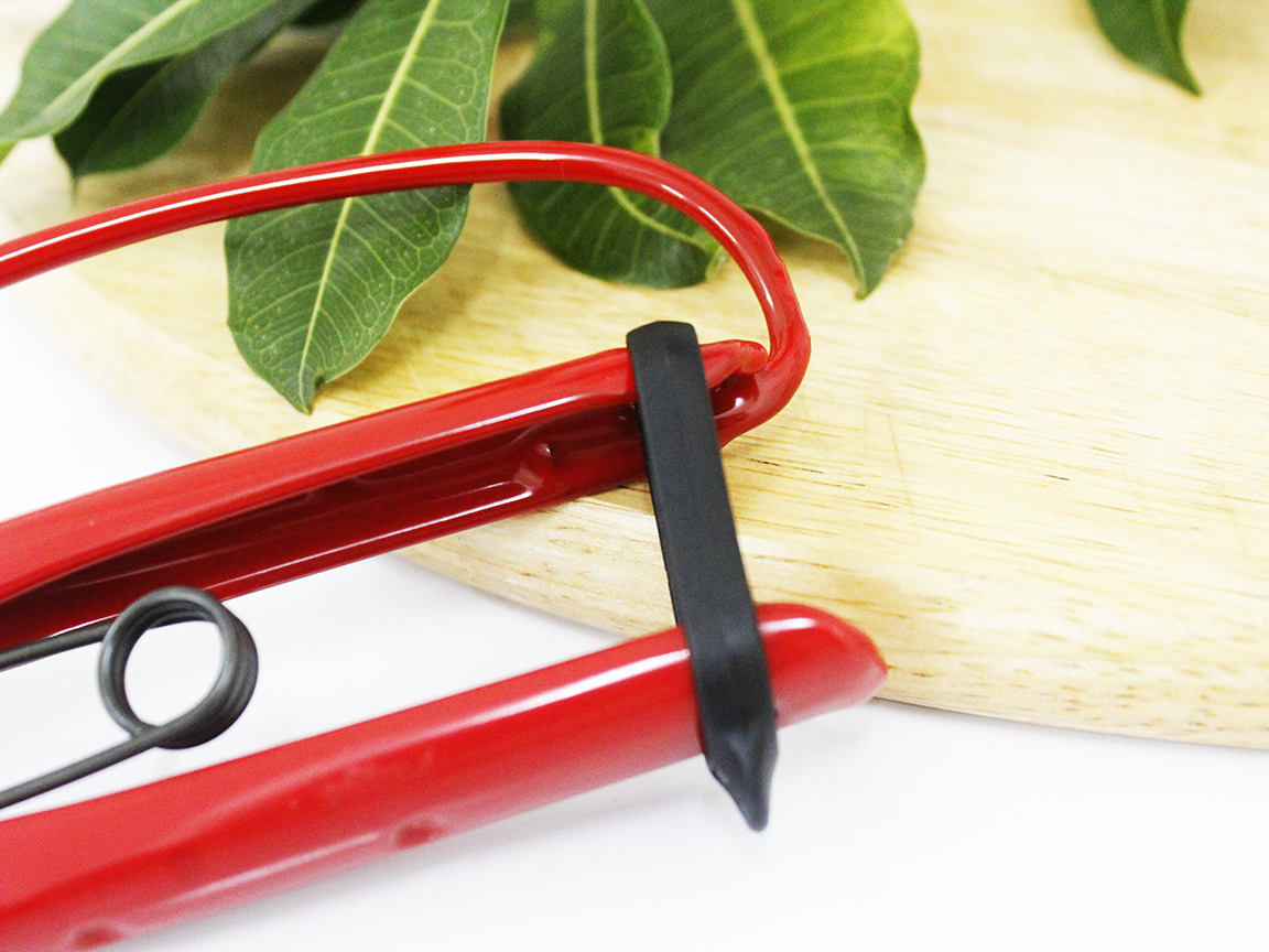 - Lưỡi cắt và lưỡi đỡ bằng thép carbon chất lượng cao, là dụng cụ cắt vô cùng cạnh sắc. - Lưỡi cong giúp đẩy cành vào họng cắt, chống trượt - Cán kéo làm