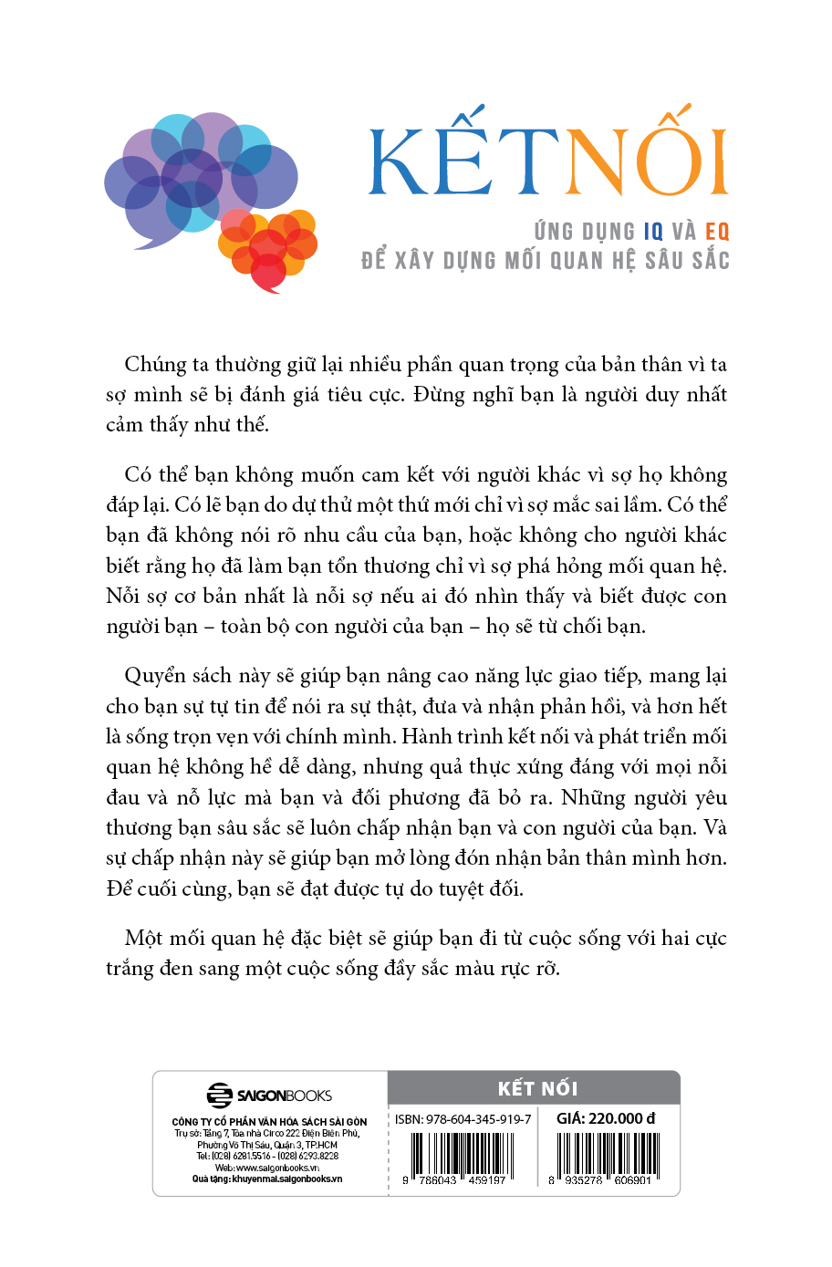 KẾT NỐI Ứng dụng IQ và EQ để xây dựng mối quan hệ sâu sắc Các mối quan hệ nằm trải dài trên một thang đo nhiều mức độ Mạng xã hội tạo cho chúng ta áp lực phải tích cực hóa mọi chuyện. Hàng trăm người theo dõi sẽ biết bạn gọi món gì trong bữa tối sang trọng tuần trước, nhưng chỉ những người có mối quan hệ đặc biệt với bạn mới biết bạn đang phải vật lộn với căn bệnh tiêu hóa suốt nhiều năm nay, hoặc biết trong bữa tối đó, bạn và người yêu đã bàn đến chuyện cùng nhau xây dựng tổ ấm hoặc cân nhắc những được mất của quyết định nghỉ việc. Đây chắc chắn là những chủ đề mà bạn sẽ không bao giờ đề cập với những người bạn trung học đã lâu không gặp hoặc những người đồng nghiệp chỉ thân thiết ở mức xã giao; đương nhiên, chúng cũng không phải là chủ đề thích hợp để trò chuyện cùng người cô mà bạn đến thăm hằng tuần. Nhưng những người có mối quan hệ đặc biệt với bạn sẽ biết điều gì đang thực sự xảy ra chỉ đơn giản vì họ hiểu bạn. Các mối quan hệ nằm trải dài trên một thang đo nhiều mức độ. Ở những mức độ thấp nhất, điều tồn tại giữa bạn và người kia là chỉ là mối liên hệ chứ không phải là sự kết nối. Nhưng khi mối quan hệ nằm ở đầu bên kia thang đo, bạn sẽ cảm thấy an toàn, được thấu hiểu, hỗ trợ, động viên và chấp nhận. Ở phần giữa thang đo, đó sẽ là những người cho bạn cảm giác gắn kết, nhưng trong số đó bạn chỉ muốn kết nối sâu sắc với một vài người. Câu hỏi đặt ra ở đây là: Làm thế nào để mối quan hệ của bạn với ai đó có thể tiến đến đầu bên kia của thang đo? Sách Kết nối - Ứng dụng IQ và EQ để xây dựng mối quan hệ sâu sắc | CONNECT Kết nối - Cuốn sách giúp bạn tạo dựng mối quan hệ sâu sắc Cuốn sách “Kết nối - Ứng dụng IQ và EQ để xây dựng mối quan hệ sâu sắc” sẽ giúp bạn đọc và khách hàng trả lời câu hỏi trên. Những mối quan hệ đặc biệt hoàn toàn có thể được xây đắp, vun vén. Chúng sở hữu 6 dấu hiệu sau đây: 1. Bạn được hoàn toàn là chính mình, và người kia cũng vậy. 2. Cả hai bạn đều sẵn sàng thể hiện mặt mong manh và dễ bị tổn thương của mình trước mặt người kia. 3. Bạn tin người ấy sẽ không dùng những điều bạn chia sẻ để phản bội bạn. 4. Hai bạn có thể thành thật với nhau. 5. Hai bạn có thể giải quyết những xung đột theo tinh thần xây dựng. 6. Cả hai đều cam kết sẽ cùng nhau phát triển và trưởng thành. Tác giả David Bradford và Carole Robin trong cuốn sách Connect: Building Exceptional Relationships with Family, Friends, and Colleagues này đã dành cả sự nghiệp để hướng dẫn mọi người cách xây dựng và vun đắp cho một mối quan hệ lành mạnh, hoạt động đúng chức năng và bền chặt trong cả phạm vi cá nhân lẫn công việc. Tài liệu tham khảo để viết nên quyển sách này chủ yếu là các nghiên cứu khoa học xã hội, đặc biệt là nghiên cứu về tâm lý học tương tác. Bên cạnh đó, quyển sách còn là bản đúc kết hàng thập kỷ kinh nghiệm sống của các tác giả. “Kết nối - Ứng dụng IQ và EQ để xây dựng mối quan hệ sâu sắc” không hứa sẽ mang đến cho bạn những công thức kiểu “5 bước dễ dàng để phát triển một mối quan hệ sâu sắc”, bởi vì không tồn tại những công thức như vậy. Trên đời này không có phương pháp nào là dành cho tất cả mọi người. Cuốn sách chỉ sẽ thẳng thắn chia sẻ với bạn về lợi ích mà bạn sẽ nhận được từ những mối quan hệ ý nghĩa, cũng như nói thật với bạn về việc những mối quan hệ như thế cần nhiều nỗ lực đến mức nào.