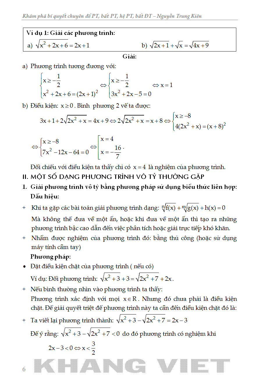 Khám phá bí quyết kì thi THPT Quốc Gia 2 trong 1 – Chuyên đề: Phương trình, bất phương trình, hệ phương trình, bất đẳng thức’’. Do tác giả Nguyễn Trung Kiên biên soạn.