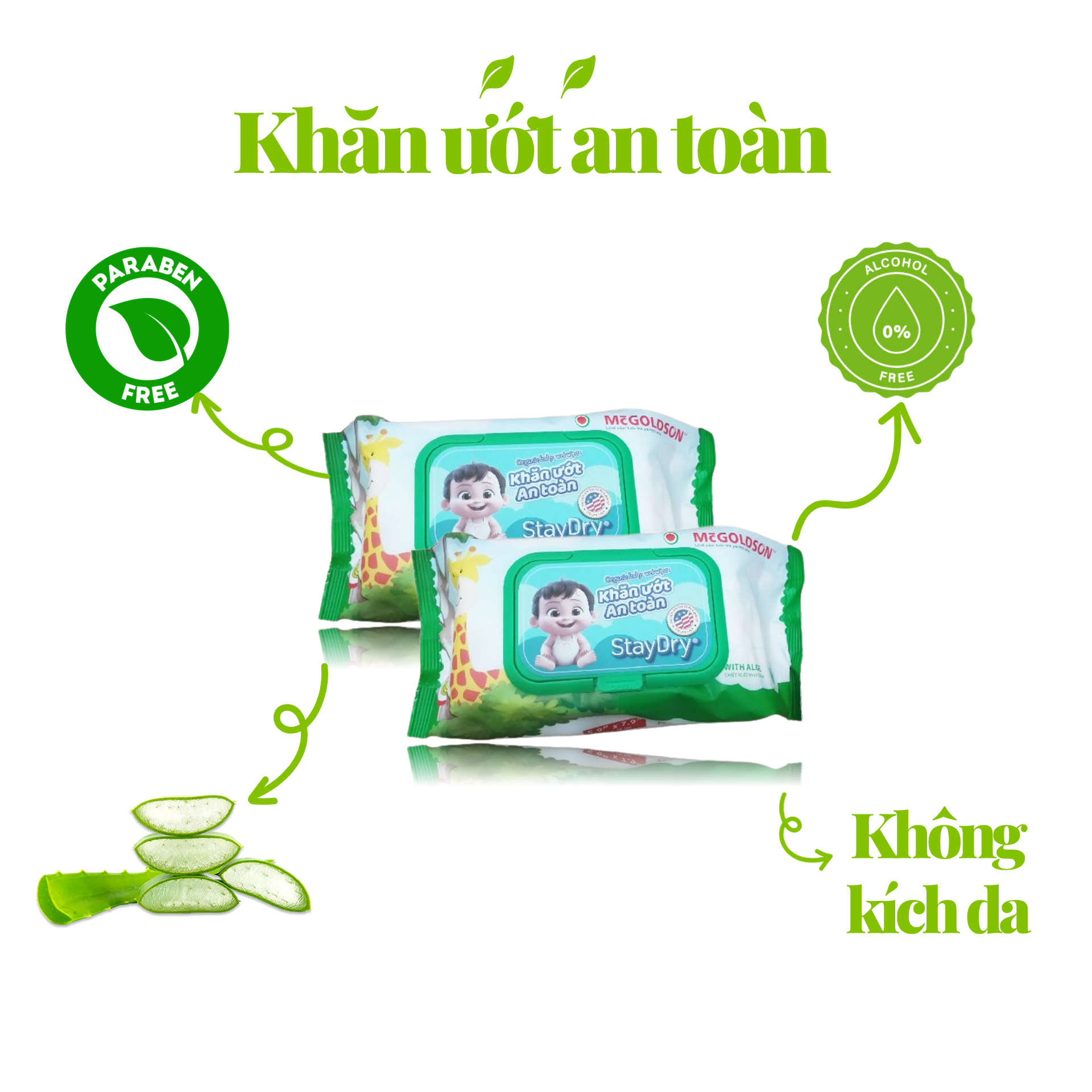 - Ngoài ra khăn giấy ướt Staydry còn có khả năng kháng một số loại vi khuẩn. Được sản xuất theo tiêu chuẩn của Mỹ, đảm bảo an toàn cho cả gia đình.