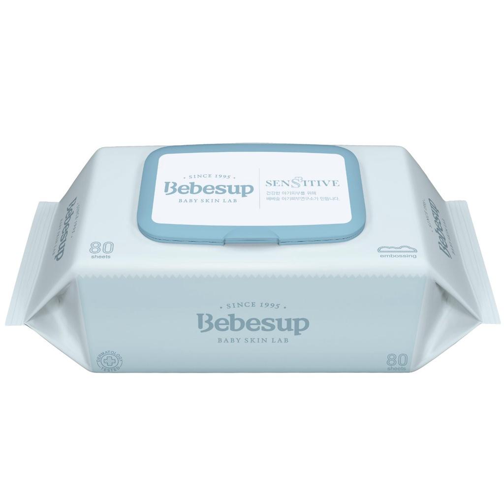 BEBESUP SENSITIVE là sản phẩm khăn ướt đại diện cho phòng nghiên cứu Baby skin lab. Khăn giấy ướt cao cấp bebesup sensitive là loại đặc biết dành cho trẻ sơ sinh và trẻ có làn da nhạy cảm. Bebesup sensitive là sản phẩm xếp hạng 1 trong cuộc thi BLIND TEST (cảm nhận sản phẩm sau khi sử dụng, không mùi hương, chất liệu vải dập nổi) do cộng đồng phụ nữ bình chọn. Sản phẩm đươc yêu thích nhất do các mẹ bầu bình chọn. Được kiểm nghiệm da liễu bởi SKINMED và INTERTEK với kết quả ít gây kích ứng với da hơn cả nước. Rất an toàn dùng cho tay và mặt. Dùng tốt cho trẻ sơ sinh và cả người lớn.