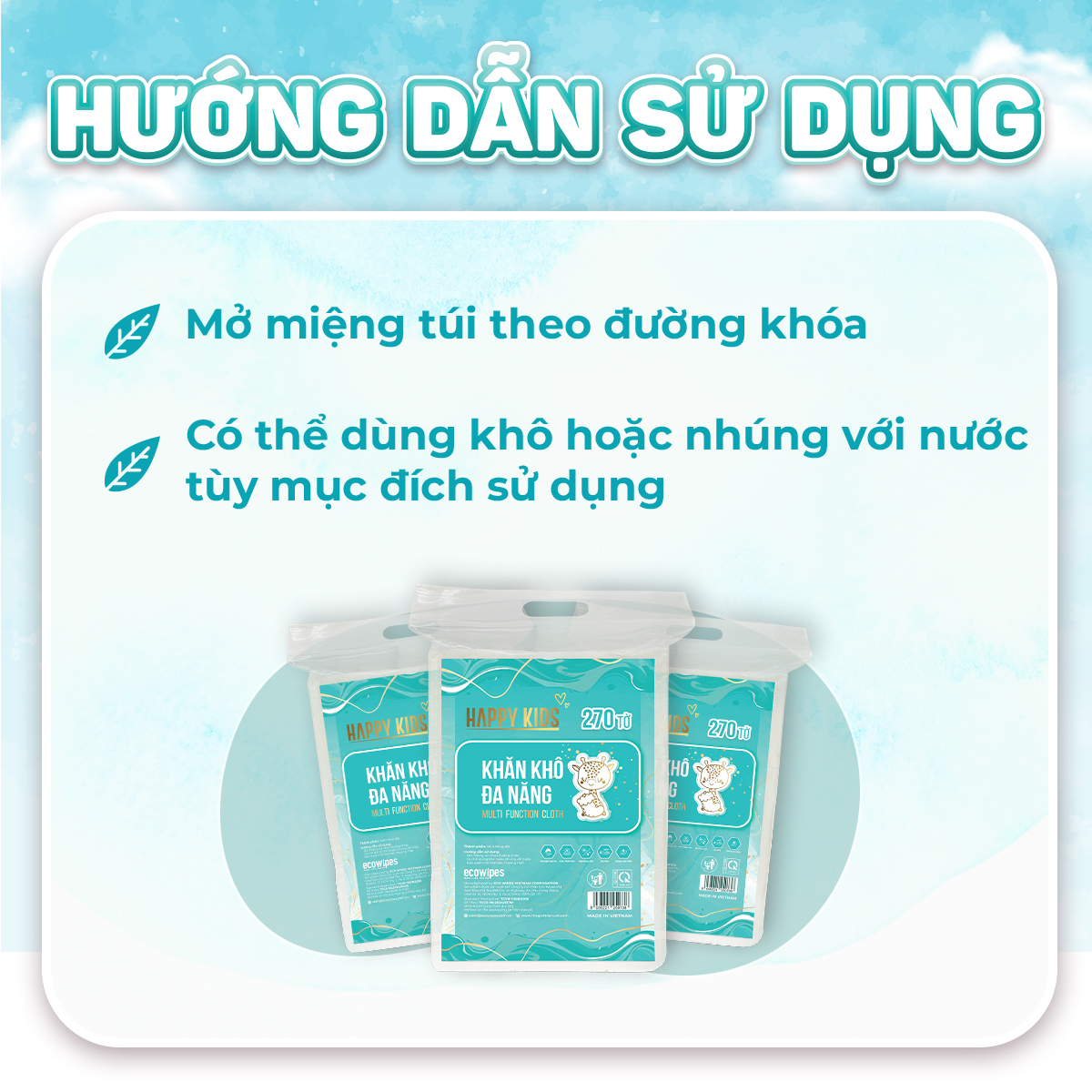 Khăn vải khô đa năng được làm từ chất liệu vải không dệt, có đặc tính dai, mềm, mịn, độ co giãn cao. Sản phẩm có thể sử dụng thay thế hoàn toàn khăn ướt,