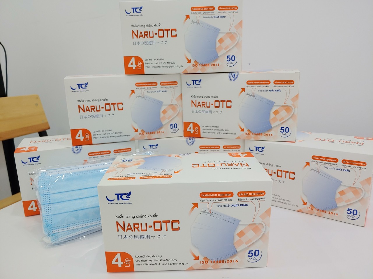 Khẩu trang kháng khuẩn 4 lớp người lớn NARU-OTC hộp 50 chiếc Lọc mùi, lọc khói độc, khí thải và bụi mịn lên đến 99% Các lớp vải không dệt được xử lý công nghệ