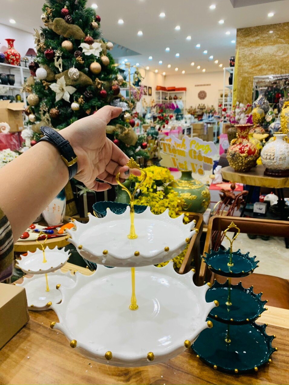 Mua tại TiktokBạn có thể đựng các loại bánh hay hoa quả cho các bữa tiệc đặc biệt của gia đình Với kiểu dáng hiện đạI sẽ làm cho bàn tiệc gia đình sang trọng và lung linh hơn bao giờ hết Thích hợp làm món quà ý nghĩa trong dịp tân gia hay đầu năm mới Khay sứ tầng là đồ gia dụng - trang trí nội thất đa năng có thể tháo lắp dễ dàng cho việc cất giữ bảo quản hay vận chuyển khay được làm từ sứ trắng cao cấp mạ vàng ven đĩa , ko bong tróc , thanh trụ inox mạ vàng dễ dàng tháo lắp