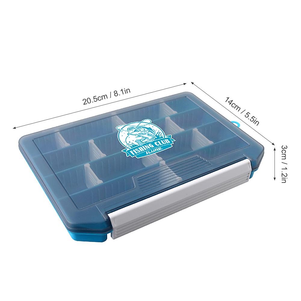 Double-sided fishing box helps keep your fishing accessories organized. Features: High-strength plastic material for durability. Double sided design keep your fishing accessories organized. Clear lids make the contents visible. Built-in drainage holes keep the box