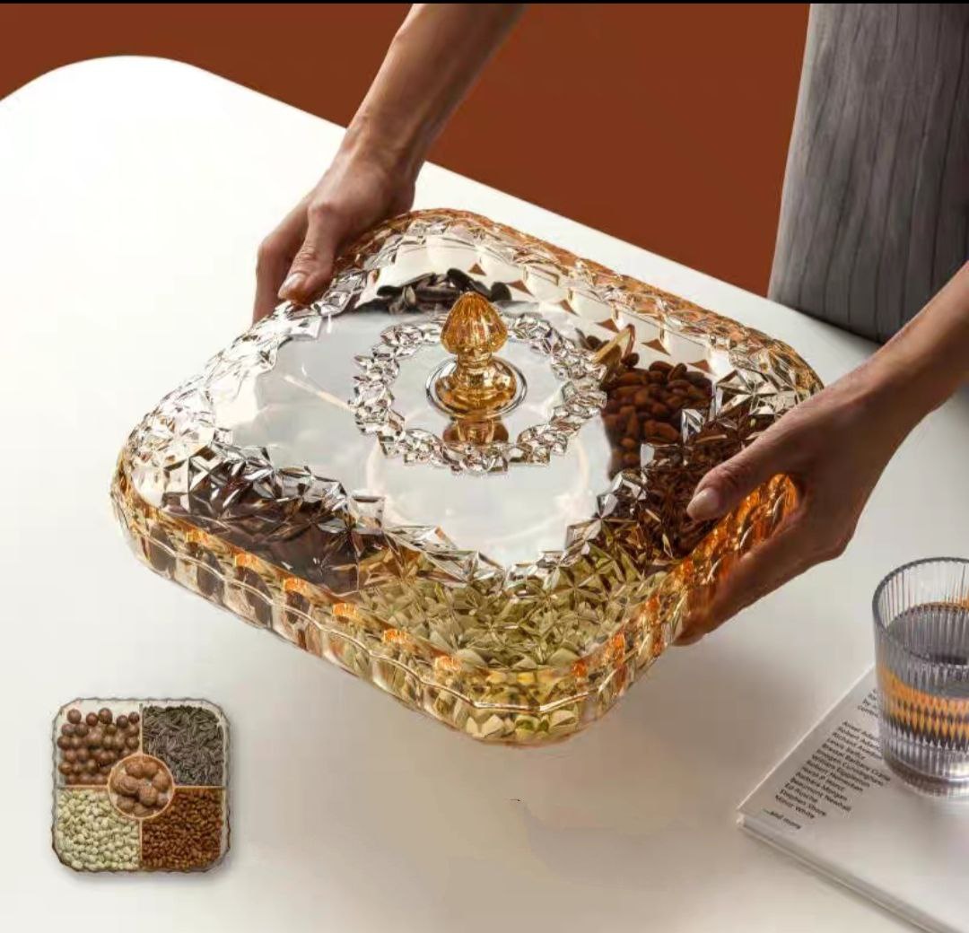 Khay đựng mứt Tết NHIỀU NGĂN bằng Nhựa Acrylic Ngày đầu xuân năm mới hẳn ai cũng mong muốn cho căn nhà của mình thêm phần mới mẻ, trang hoàng. Vậy nên bên cạnh việc trang trí nhà cửa, thì việc chuẩn bị những món đồ nhỏ như khay mứt tết chẳng hạn cũng không kém phần quan trọng. Bộ Khay đựng mứt Tết 6 ngăn bằng Nhựa Acrylic vô cùng trang nhã và đẹp mắt. Nắp đậy kín ngăn cho gió, côn trùng không bay vào được… đảm bảo cho món mứt luôn thơm ngon. Chất liệu nhựa cao cấp cho bàn trà, không gian phòng khách, làm việc… tiện nghi sang trọng bậc nhất.