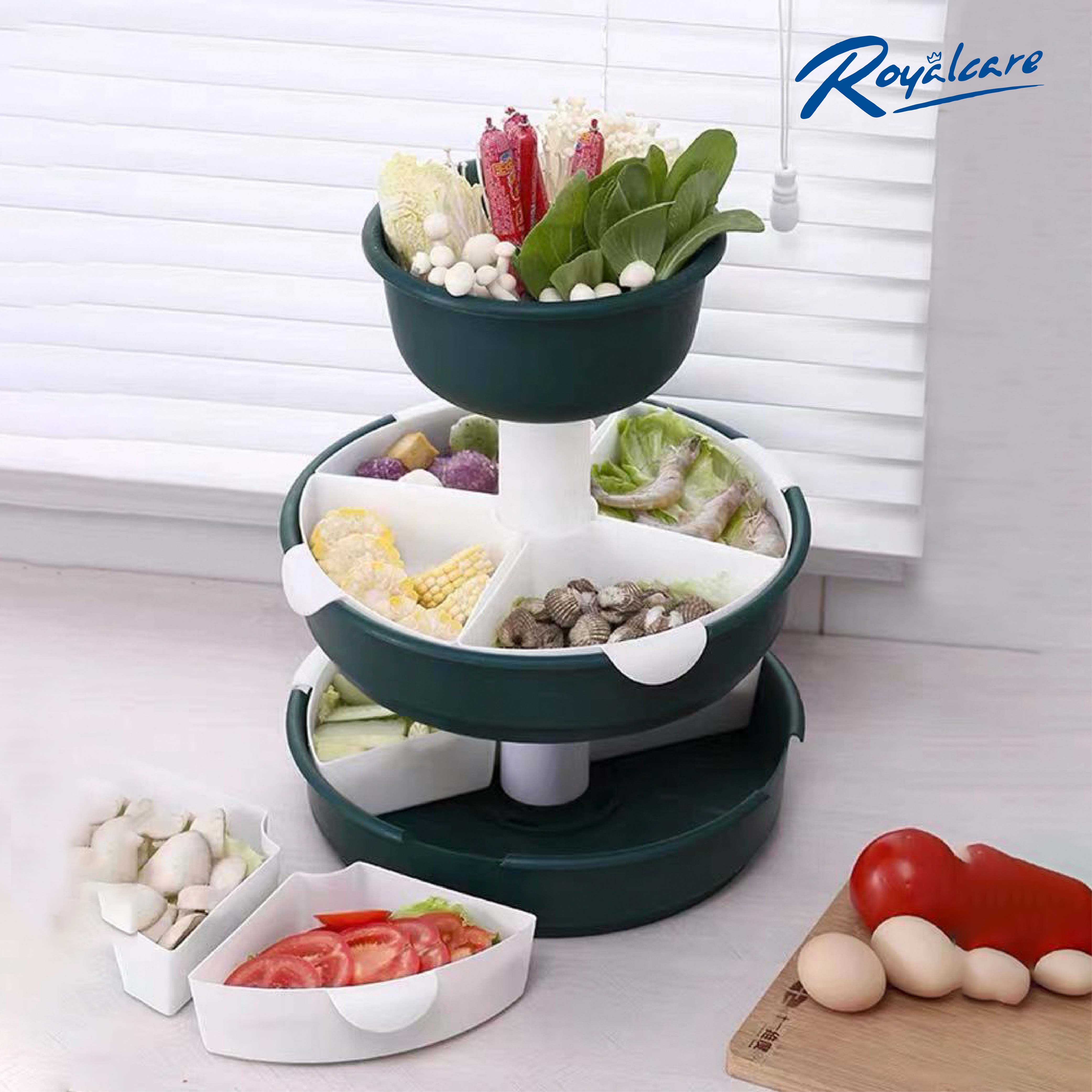 Khay đựng thức ăn , hoa quả , rau ăn lẩu đa năng Royal Care xoay 360 độ nhiều ngăn phân loại