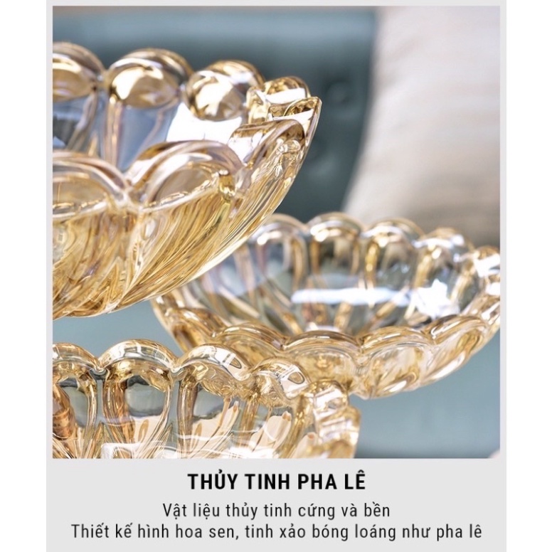 Đĩa Thuỷ Tinh Đựng Hoa Quả, Khay Thuỷ Tinh Pha Lê Đựng Hoa Quả Sang Trọng - KHAY MỨT Chân Bồng Pha Lê Mạ Vàng Phong Cách Royal Sang Trọng - HÀNG CHÍNH HÃNG MINIIN
