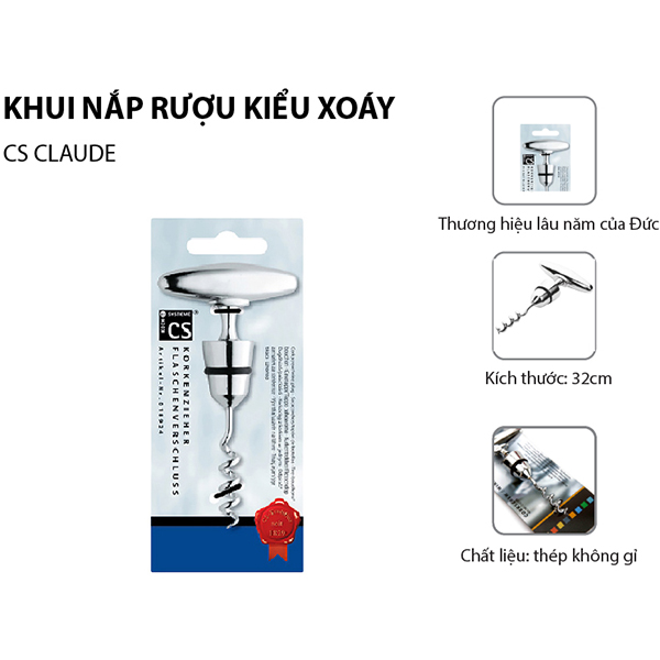 Mua tại TiktokKhui Nắp Rượu Kiểu Xoáy CS Claude 018924 là sản phẩm thông minh giúp bạn khui rượu vang, rượu tây một cách dễ dàng, nhanh chóng, tiện lợi.