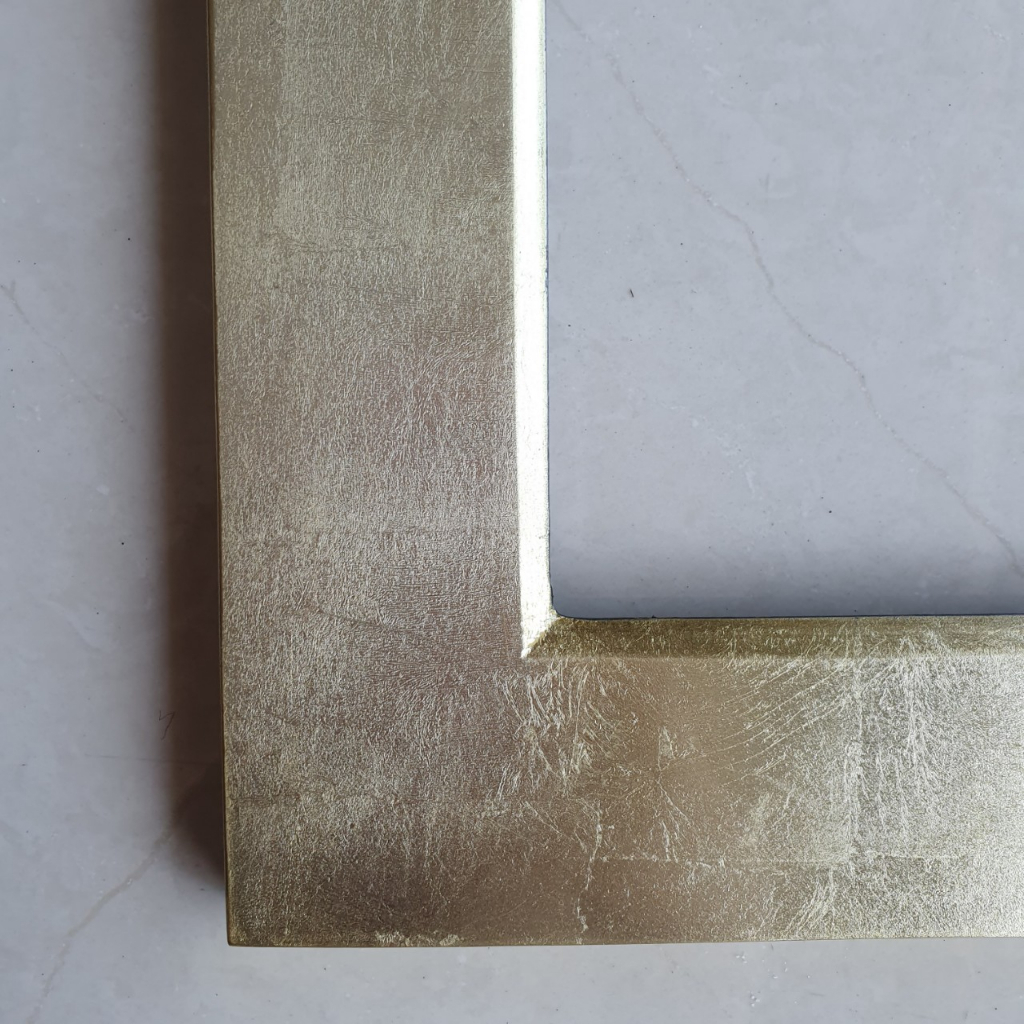 Khung gỗ sơn mài dát bạc vàng bóng đẹp, bền màu.