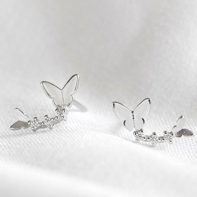 Khuyên tai bạc 925 thiết kế nối tiếp nhau trẻ trung mới lạ độc đáo lấp lánh long lanh Dế Bạc - K6012