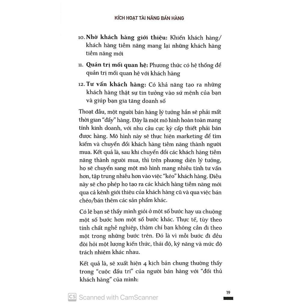 Sách do dịch giả Phạm Thanh Tâm chuyển ngữ, in 4 màu, giấy sang trọng, thiết kế đẹp mắt. Giá bán 76.000 đồng. Về tác giả - Kích Hoạt Tài Năng Bán Hàng. Ken Bay Hai Meng, “nick name” Ken, tốt nghiệp Đại học Hull với bằng MBA về Marketing Chiến Lược. Ông bắt đầu làm việc trong ngành dịch vụ tài chính từ năm 1988 khi tham gia công ty Great Eastern Life (công ty bảo hiểm nhân thọ lớn nhất Singapore và Malaysia). Là người không ngừng học hỏi, Ken Bay liên tục cập nhật kiến thức, nâng cao trìn độ bản thân bằng cách tham gia những chương trình đào tạo thực tiễn nhất hiện nay của thế giới như: chương trình “Go Mad” của Anh, “Tâm lý học mới về bán hàng”và “Lãnh đạo hiệu quả” của Brian Tracy. Ken Bay cũng là chuyên gia thực hành NLP có chứng chỉ